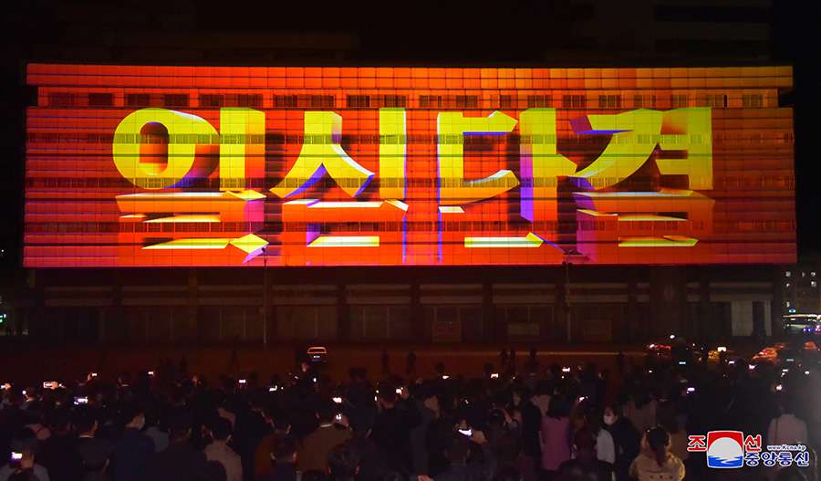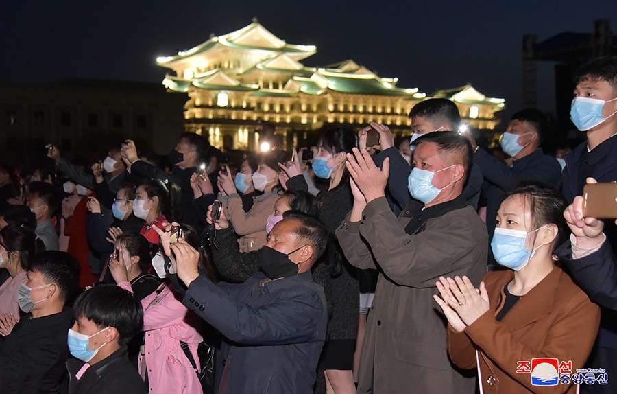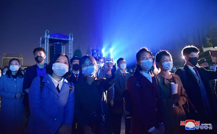 Okolí Pchjongjangského obchodního domu číslo 1 a úpatí kopce Čangde byly od podvečera plné obyvatel, kteří se shromáždili, aby sledovali světelný festival.