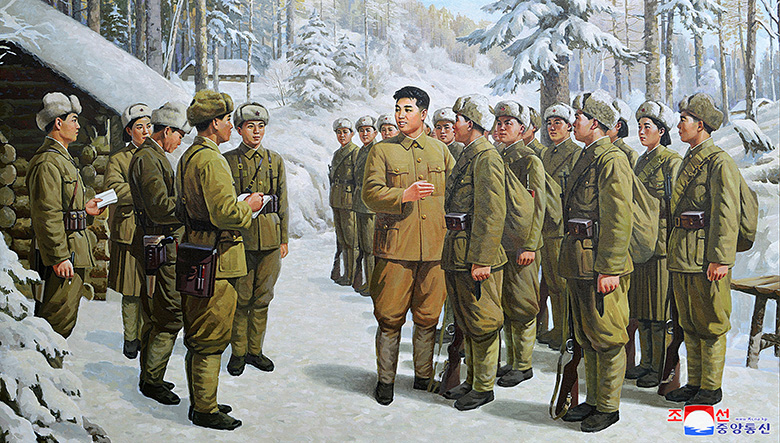 S velkou prozíravostí k možným nebezpečím imperialistických nepřátel velký vůdce soudruh Kim Ir Sen v roce 1948 rozvinul revoluční armádu v pravidelné ozbrojené síly a založil Korejskou lidovou armádu. Ta poté dosáhla slavného vítězství ve velké Vlastenecké válce hrdinného korejského lidu proti agresi jihokorejské loutkové vlády, USA a dalších imperialistických zemí vůči mírumilovnému lidu Vaší vlasti.