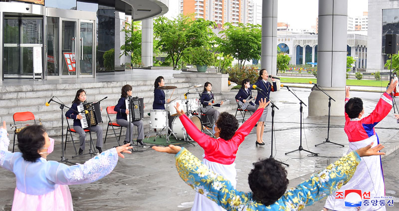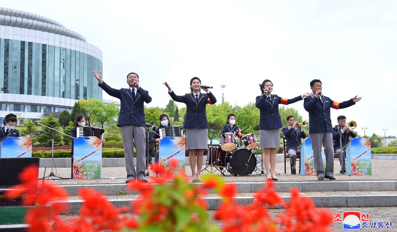 Členovia ústredného umeleckého oddielu pre zvýšenie výroby, robotníckej umelecká skupina ústredného výboru Všeobecnej federácie odborových zväzov Kórey, umelecký oddiel ústredného výboru Zväzu poľnohospodárskych pracovníkov, umelecký oddiel ústredného výboru Socialistického zväzu žien, železničný umelecký oddiel, umelecký oddiel stavebnej komisie hlavného mesta a umelecké oddiely zväzu žien v rôznych okresoch vrátane okresov Moranbong a Tedonggang predviedli na rôznych miestach mesta pestré vystúpenia.