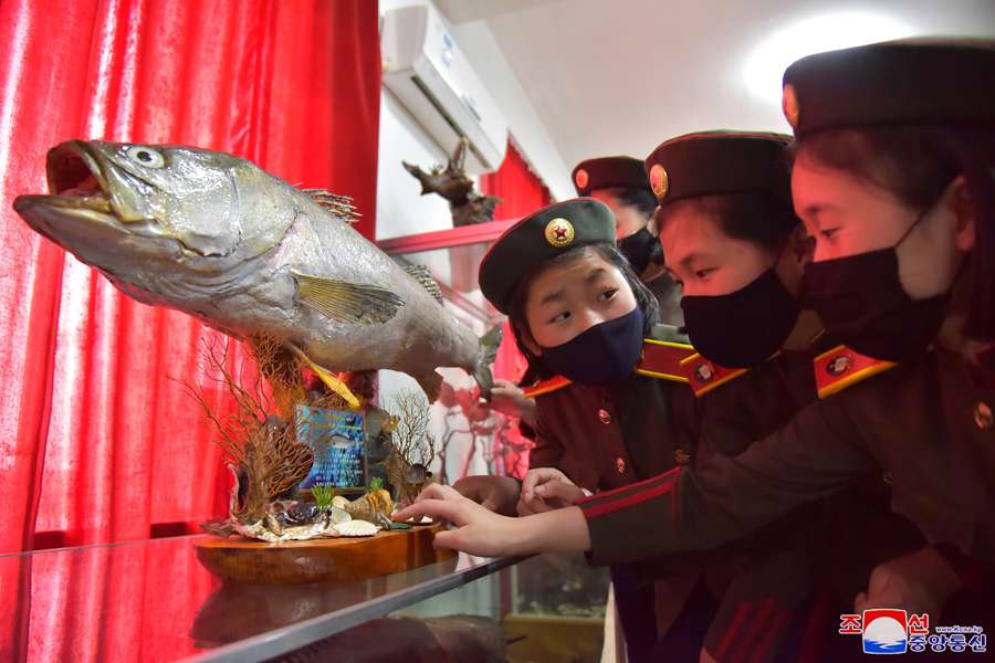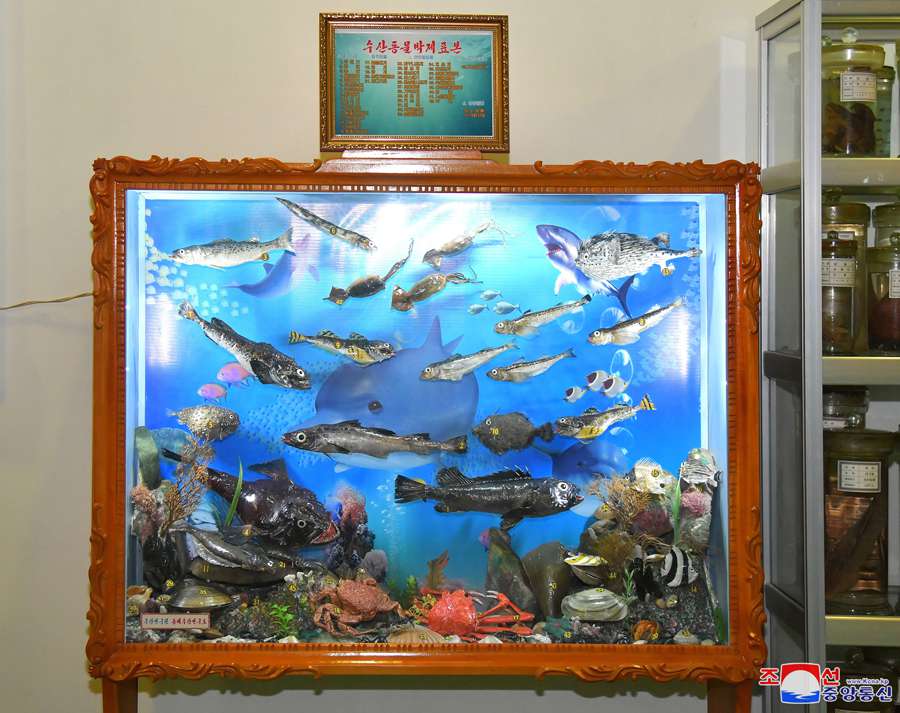Desítky vycpaných exemplářů mořských živočichů byly dopraveny do Revoluční školy Mangjongde a vzácný vycpaný okoun o délce 110 cm byl dodán Revoluční škole Kang Pan Sok.