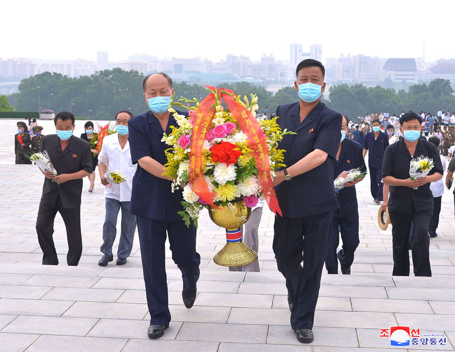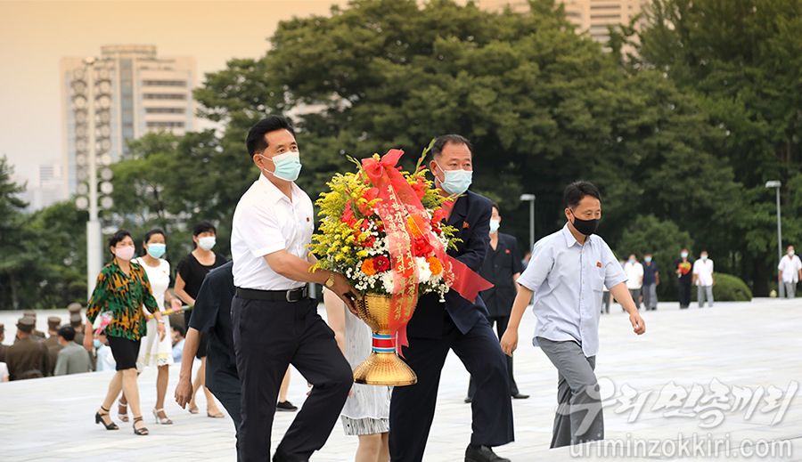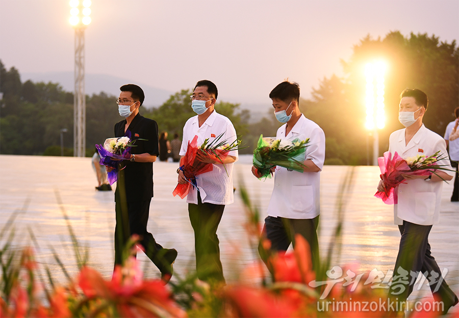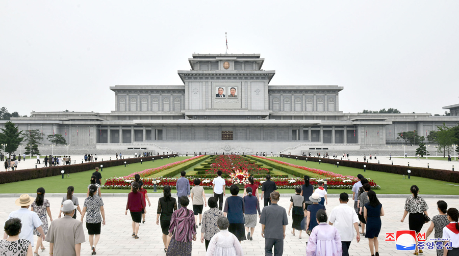 Generální tajemník Korejské strany práce a předseda pro státní záležitosti Korejské lidově demokratické republiky vážený soudruh Kim Čong Un navštívil 8. července v 0:00 hodin Palác slunce Kumsusan. Doprovázeli ho členové politbyra Ústředního výboru Korejské strany práce a členové ústředního řídícího orgánu strany.
