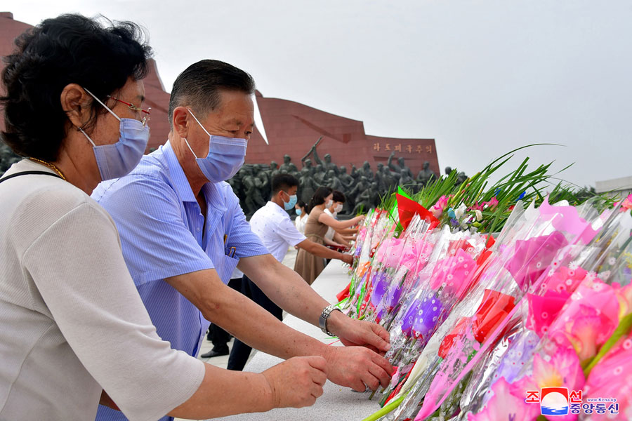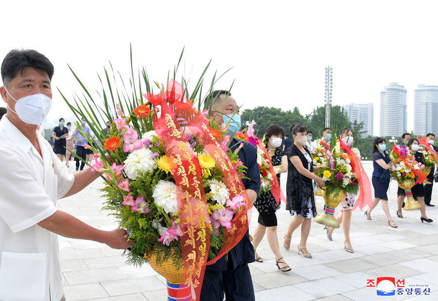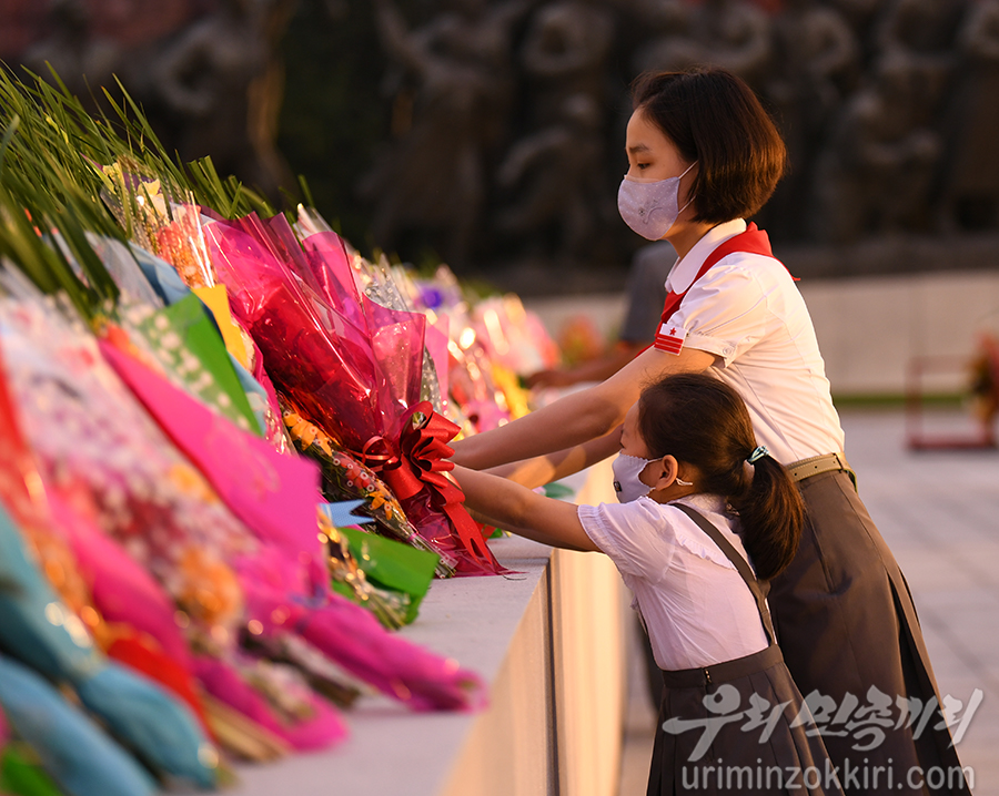 K sochám velkého vůdce soudruha Kim Ir Sena a velkého vůdce soudruha Kim Čong Ila byl položen koš květin jménem váženého soudruha Kim Čong Una a květinové koše jménem Ústředního výboru KSP, Komise pro státní záležitosti KLDR, prezídia Nejvyššího lidového shromáždění KLDR a vlády KLDR.