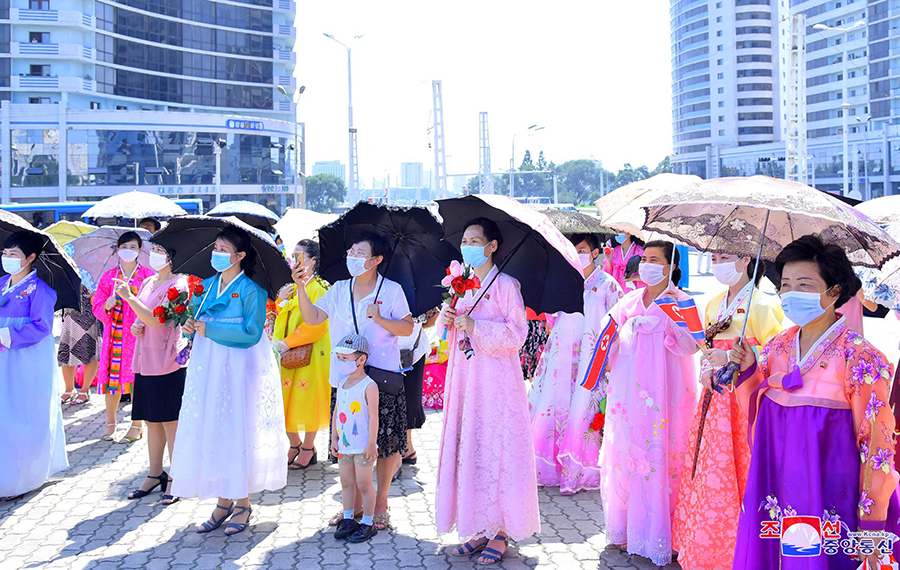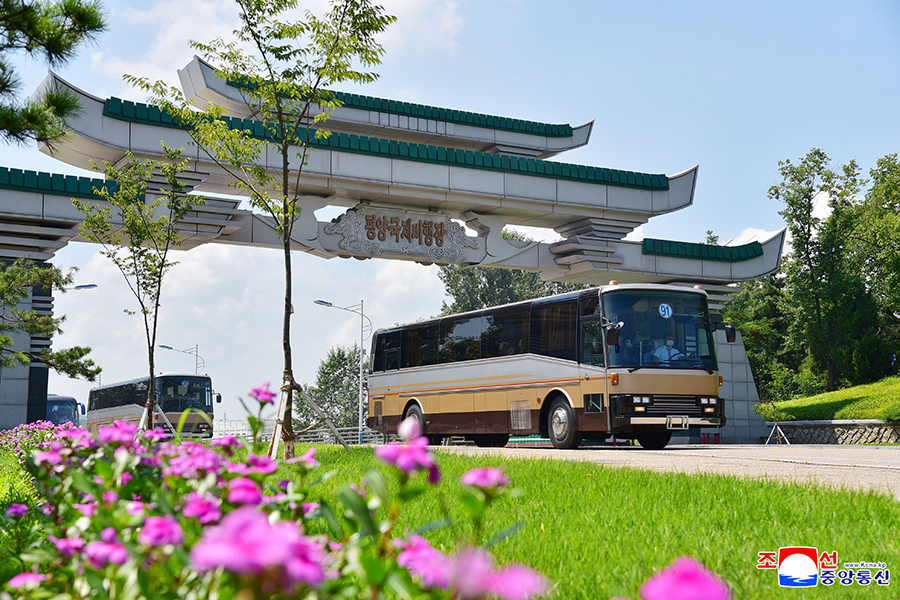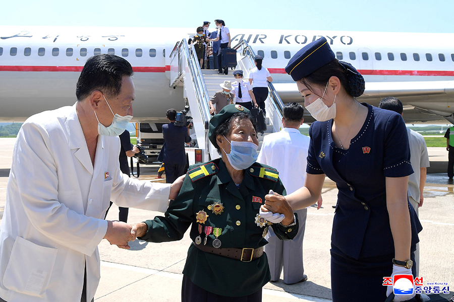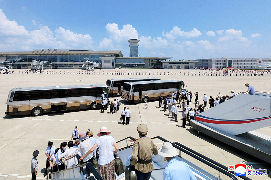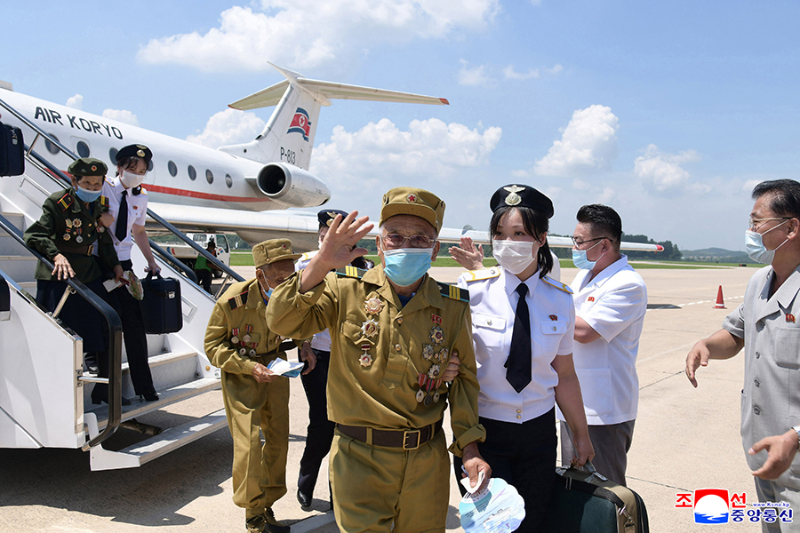 Příjezd účastníků 7. konference válečných veteránů do Pchjongjangu