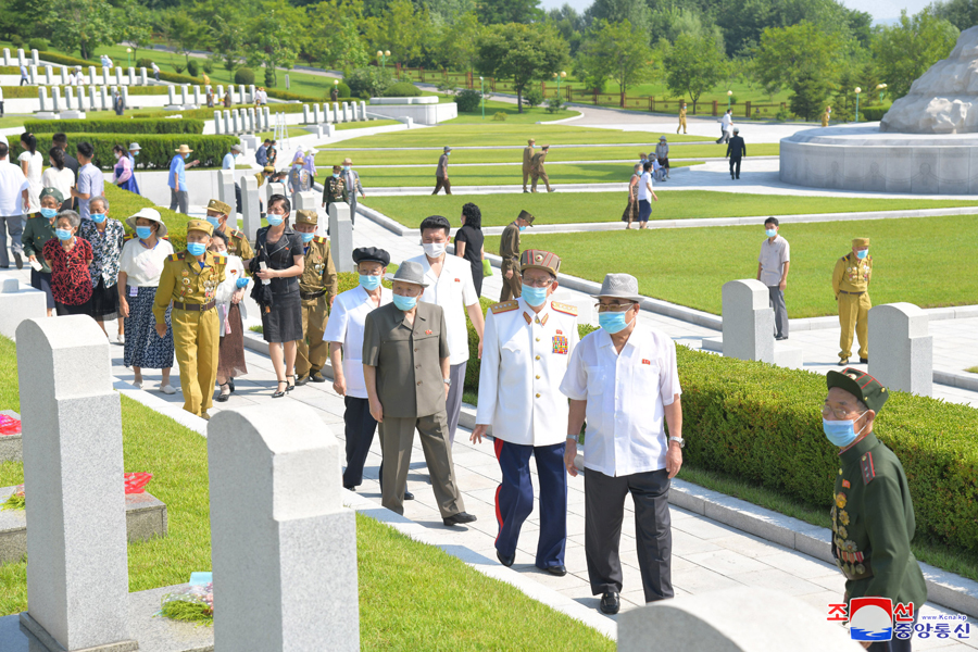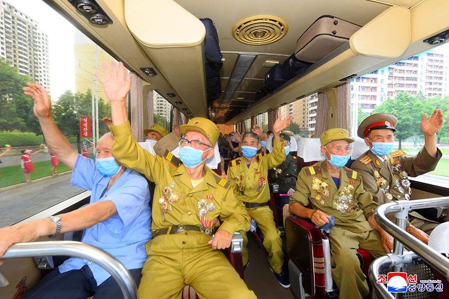 U příležitosti Dne vítězství se pracující lid a studenti setkali s válečnými veterány. Navštívili rodiny válečných veteránů a přáli jim, aby vedli hodnotný život v srdečné péči váženého soudruha Kim Čong Una.