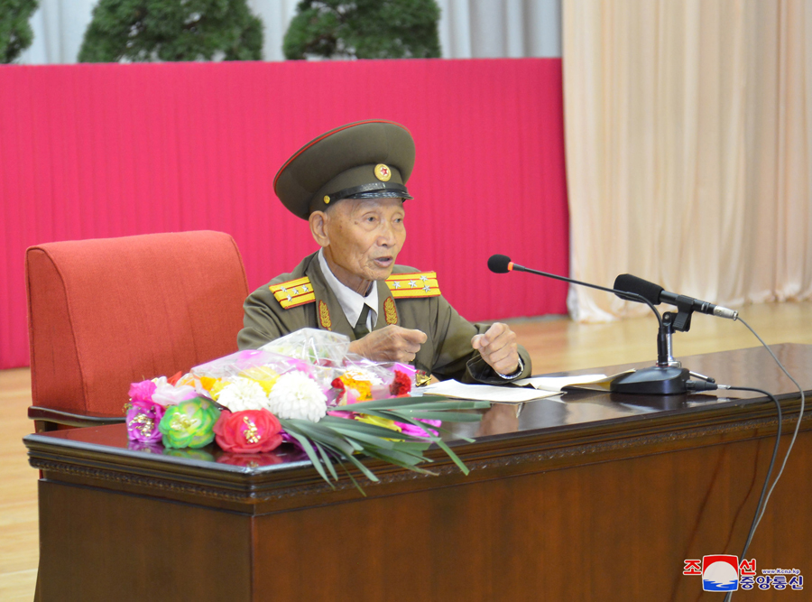 Na shromáždění vystoupil s projevem soudruh Ri Je Čchol, který byl během Vlastenecké osvobozenecké války rozvědčíkem.