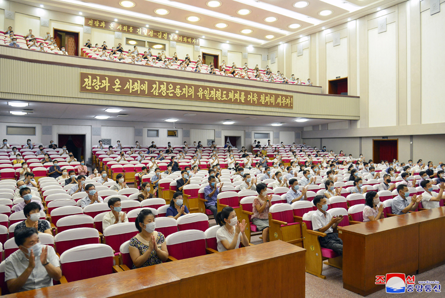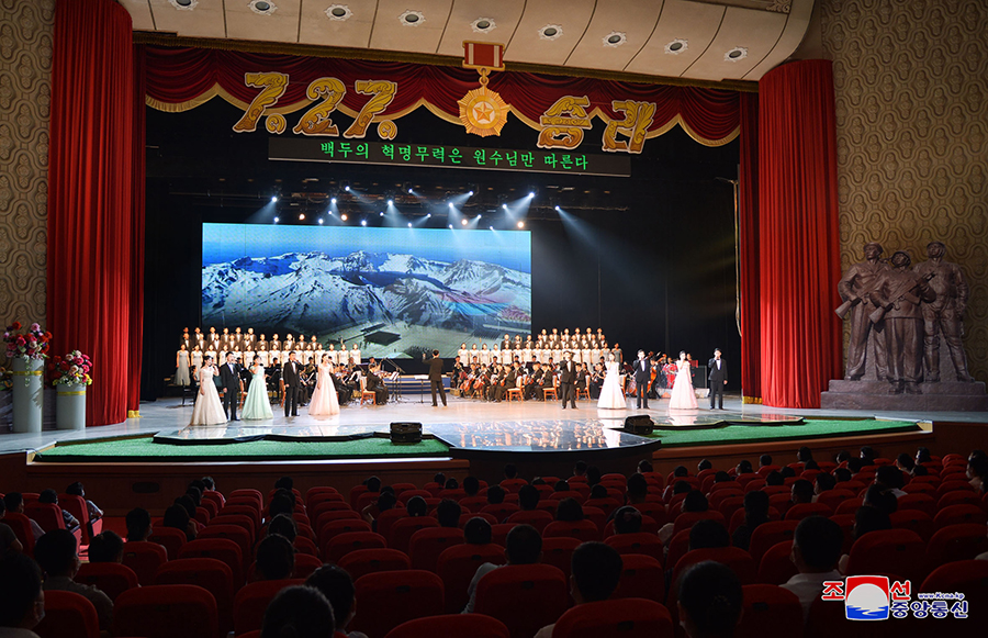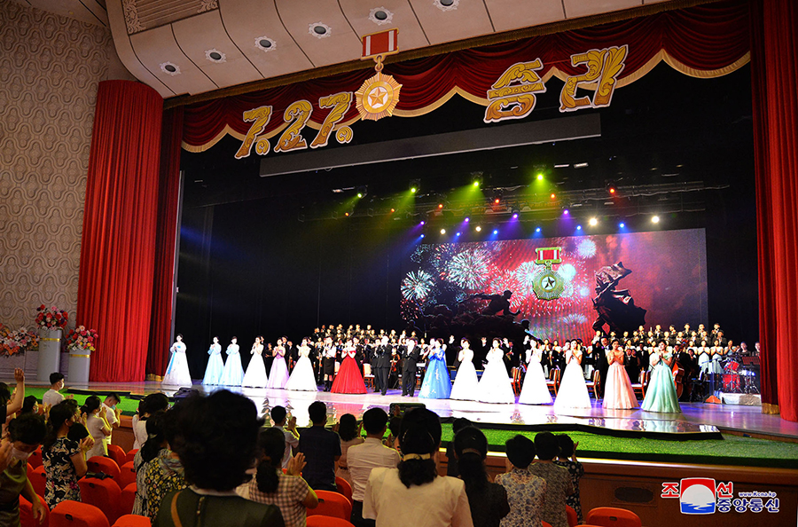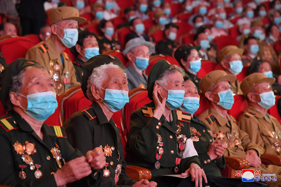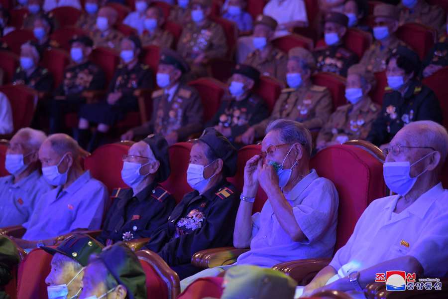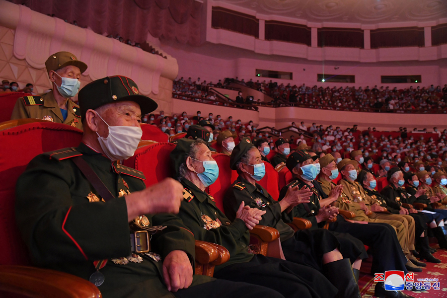 Spolu s válečnými veterány koncert sledovaly kádry strany a vlády, mezi nimi členové prezídia politbyra Ústředního výboru Korejské strany práce soudruzi Čche Rjong He a Kim Tok Hun.