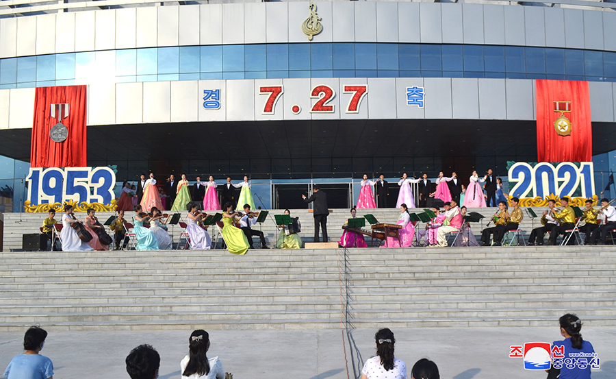 Pchjongjang 28. července čučche 110 (2021) – Lid a sloužící mužstvo celé země slavnostně oslavili 68. výročí vítězství ve velké Vlastenecké osvobozenecké válce.