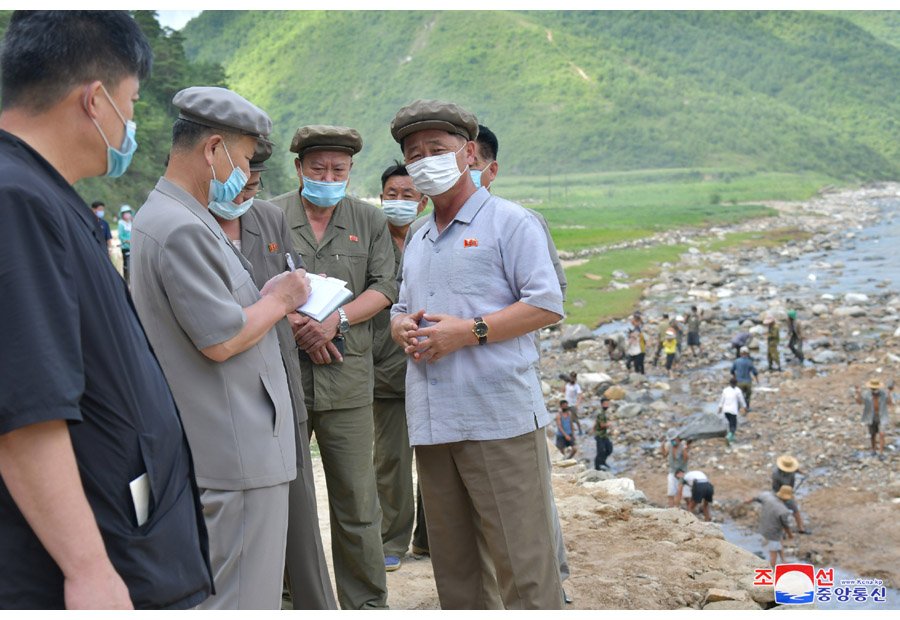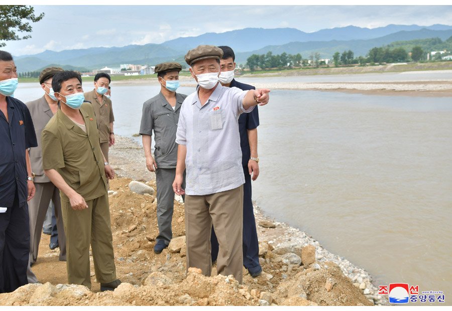 Pchjongjang 12. srpna čučche 110 (2021) (KCNA) – Člen prezídia politbyra Ústředního výboru Korejské strany práce a předseda vlády Korejské lidově demokratické republiky soudruh Kim Tok Hun se na místě seznámil s průběhem likvidace následků povodní v provincii Jižní Hamgjong.