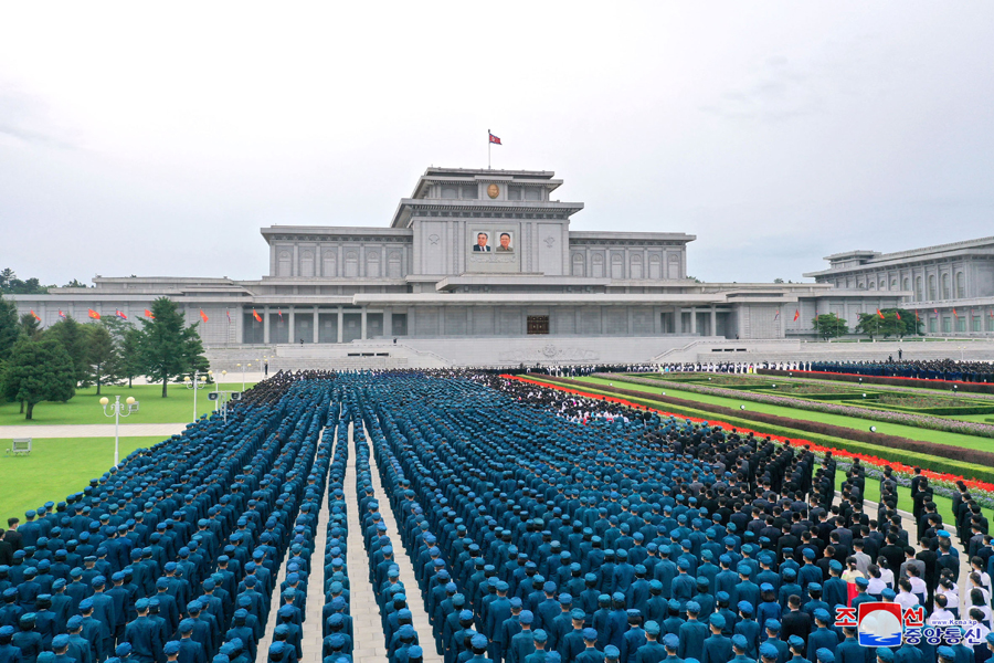 Účastníci oslav Dne mládeže 27. srpna navštívili Palác slunce Kumsusan, kde leží ve své životní podobě velký vůdce soudruh Kim Ir Sen a velký vůdce soudruh Kim Čong Il, a vyjádřili jim hlubokou úctu.