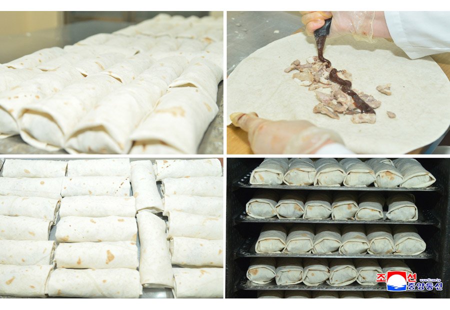 Pchjongjang 22. září čučche 110 (2021) (KCNA) – Potravinářský závod Kumsong zvyšuje výrobu chutných a výživných pšeničných placek plněných masem.