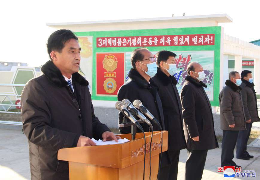 Súdruh Won Kjong Mo, predseda Provinčného výboru pre vidiecke hospodárstvo, vystúpil so slávnostným prejavom.