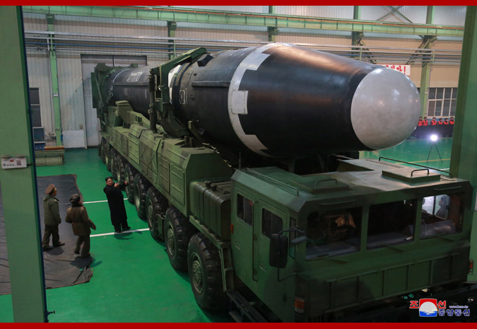 Soudruh Kim Čong Un vede zkušební střelbu mezikontinentální balistické rakety Hwasong-15 v listopadu 2017