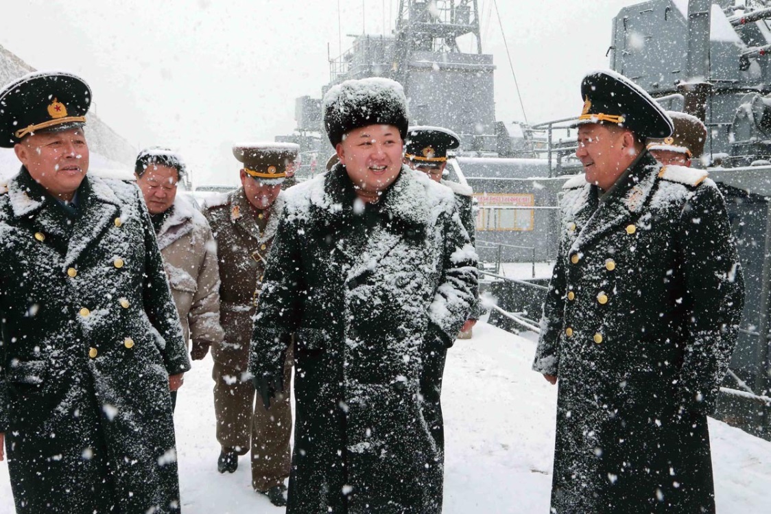 Soudruh Kim Čong Un na inspekci jednotky námořnictva Korejské lidové armády v prosinci 2014