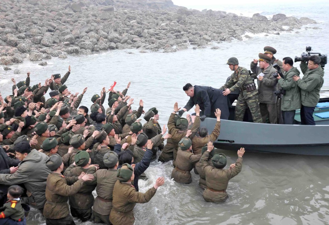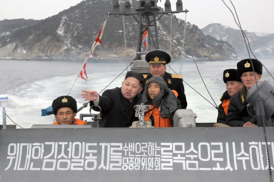 Soudruh Kim Čong Un dohlíží na taktické cvičení námořnictva Korejské lidové armády v únoru 2012