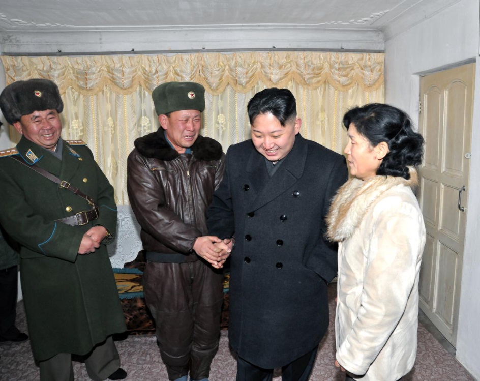 Soudruh Kim Čong Un na návštěvě rodiny pilota v lednu 2012