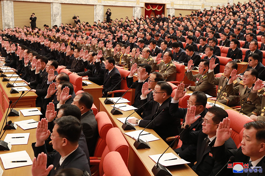 Soudruh Kim Čong Un vystoupil s hlavním projevem k prvnímu bodu programu „O směřování práce strany a státu v roce 2022“.