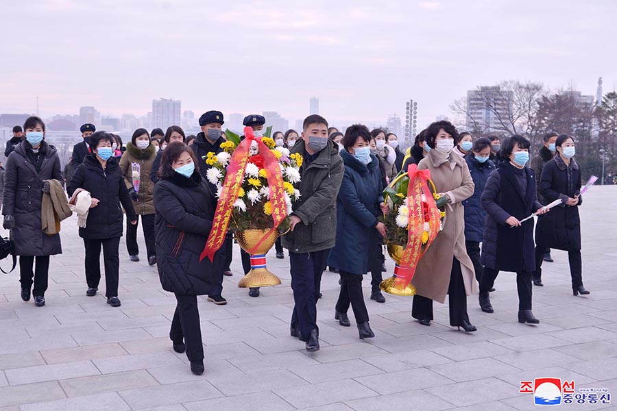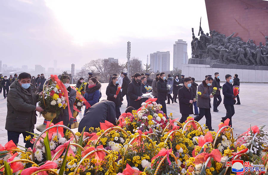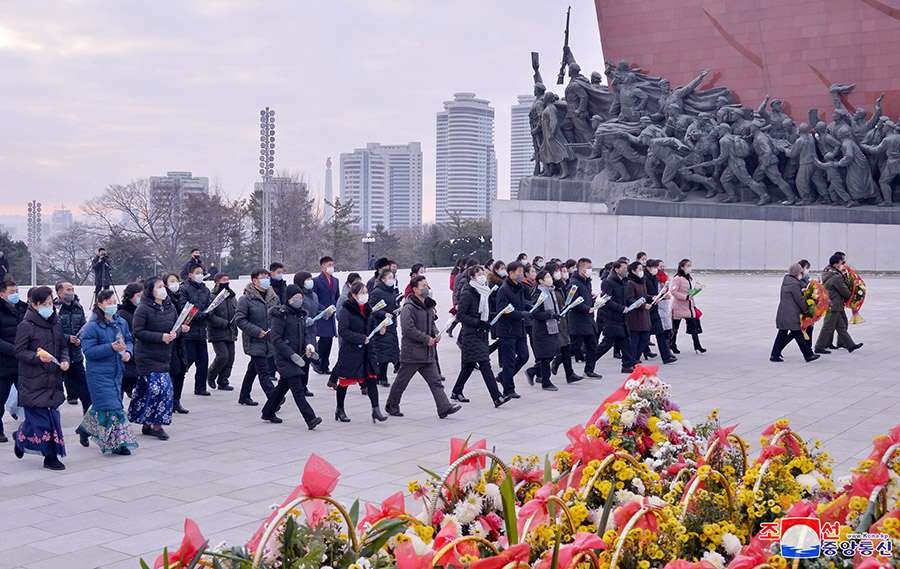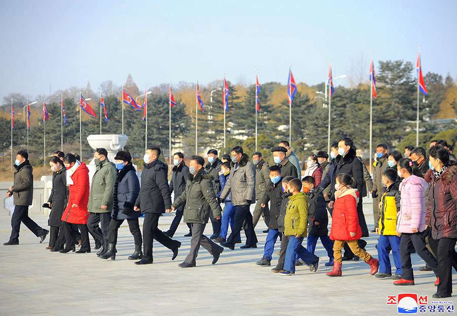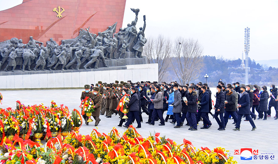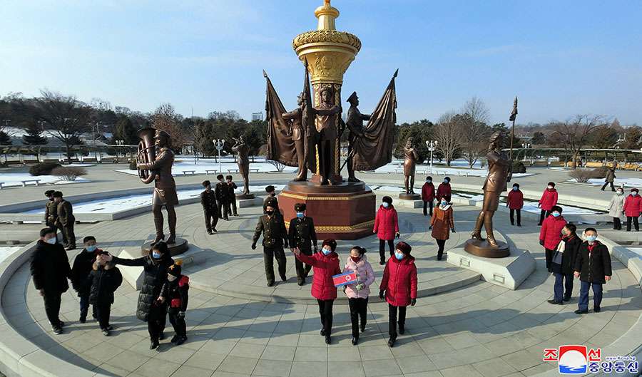 U příležitosti Nového roku navštívili funkcionáři, pracující, sloužící mužstvo lidové armády, studenti a školáci na různých místech bronzové sochy a mozaiky slunečně usměvavých velkých vůdců soudruhů Kim Ir Sena a Kim Čong Ila a vyjádřili jim svou hlubokou úctu.