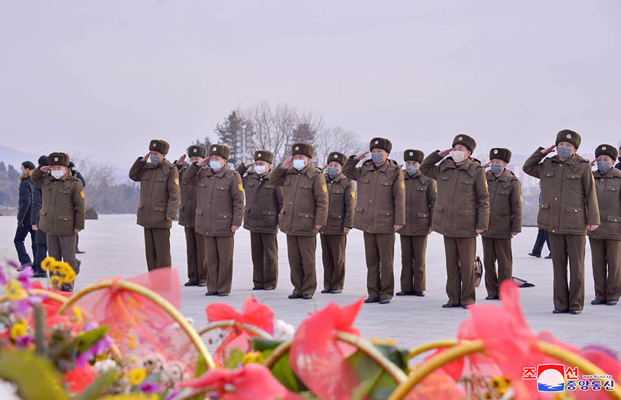 Jménem soudruha Kim Čong Una byl položen koš květin k sochám velkého vůdce soudruha Kim Ir Sena a velkého vůdce soudruha Kim Čong Ila. Rovněž byly položeny koše květin jménem Ústředního výboru Korejské strany práce, Komise pro státní záležitosti KLDR, prezídia (stálého výboru) Nejvyššího lidového shromáždění KLDR a vlády KLDR.