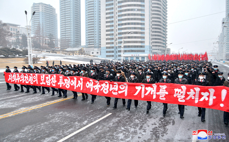 Pchjongjang 11. ledna čučche 111 (2022) – (KCNA) – 10. ledna se v Letním divadle Parku mládeže města Pchjongjangu uskutečnilo shromáždění odhodlání předvoje mládeže k důslednému plnění závěrů 4. pléna 8. Ústředního výboru Korejského strany práce.