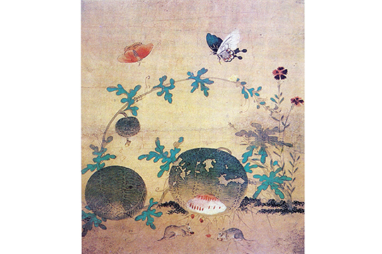 Kórejský obraz „Melóny“ nakreslila Sin Sa Im Dang, slávna maliarka z obdobia feudálnej dynastie Čoson (1392 – 1910).