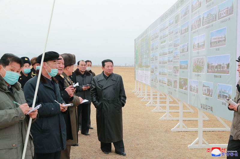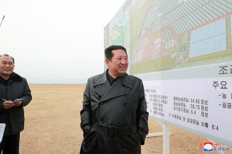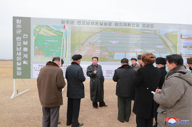 Pchjongjang 28. ledna čučche 111 (2022) (KCNA) – Generální tajemník Korejské strany práce a předseda pro státní záležitosti Korejské lidově demokratické republiky vážený soudruh Kim Čong Un si prohlédl místo plánované stavby v oblasti Rjongpcho v okrese Hamdžu provincie Jižní Hamgjong, kde bude vybudováno rozsáhlé skleníkové zelinářské zemědělské družstvo.