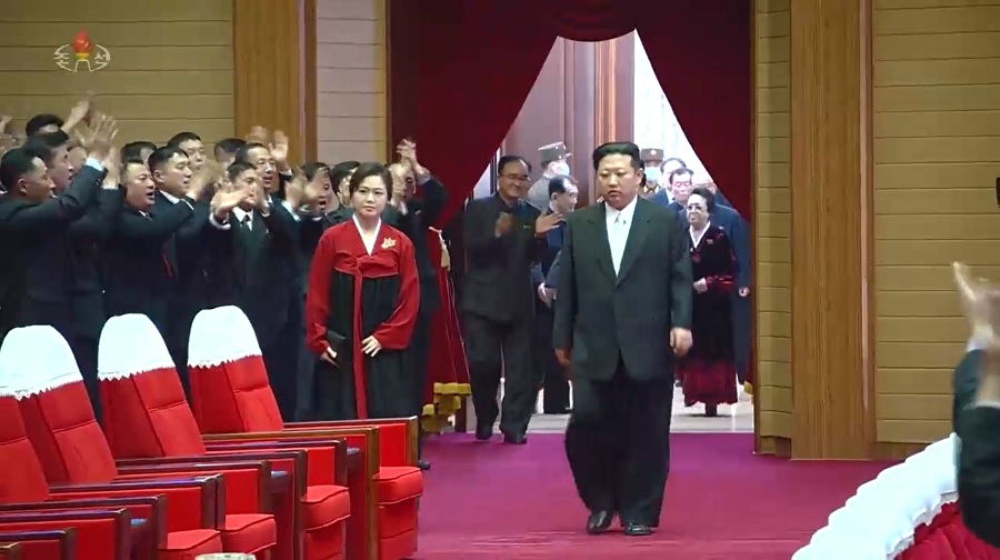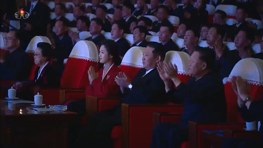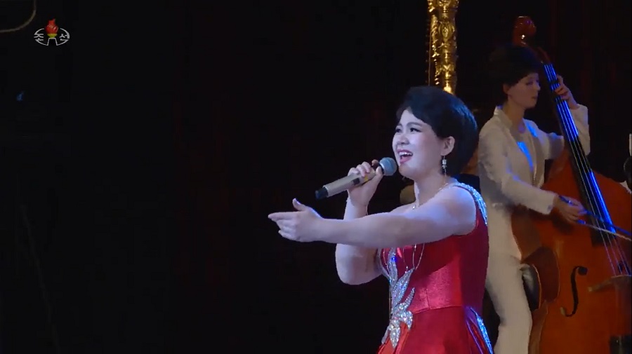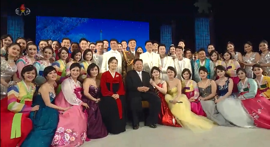 Vážený soudruh generální tajemník spolu se svou manželkou Ri Sol Džu vystoupil na pódium a potřásl si rukou s každým účinkujícím, poblahopřál jim k úspěchu koncertu a poté se s nimi nechal na paměť vyfotografovat.