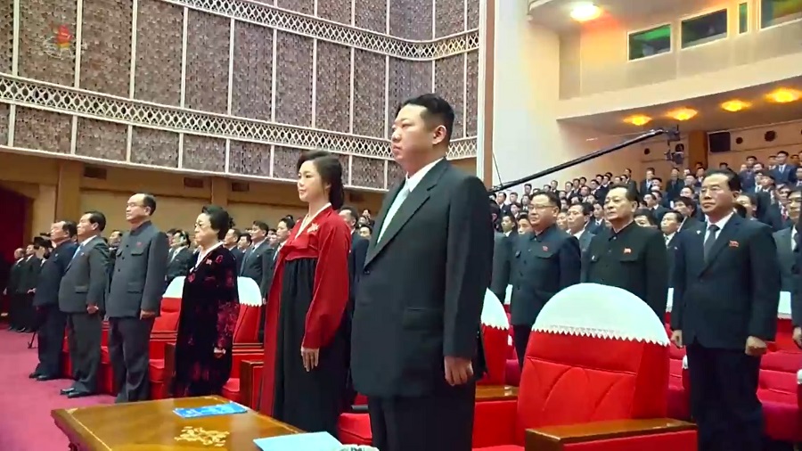 Za uvítacího pochodu vstoupil soudruh Kim Čong Un spolu se svou manželkou Ri Sol Džu do hlediště divadla. Všichni účastníci bouřlivým jásotem „Hurá!“ přivítali soudruha generálního tajemníka, který s vynikající ideologickou a teoretickou moudrostí, osvědčenými vůdčími schopnostmi a horoucí láskou k lidu otevírá novou éru a nový svět na této zemi, kde jsou plně uskutečňovány ideály a štěstí lidu a vzácná touha národa po vybudování mocné země.