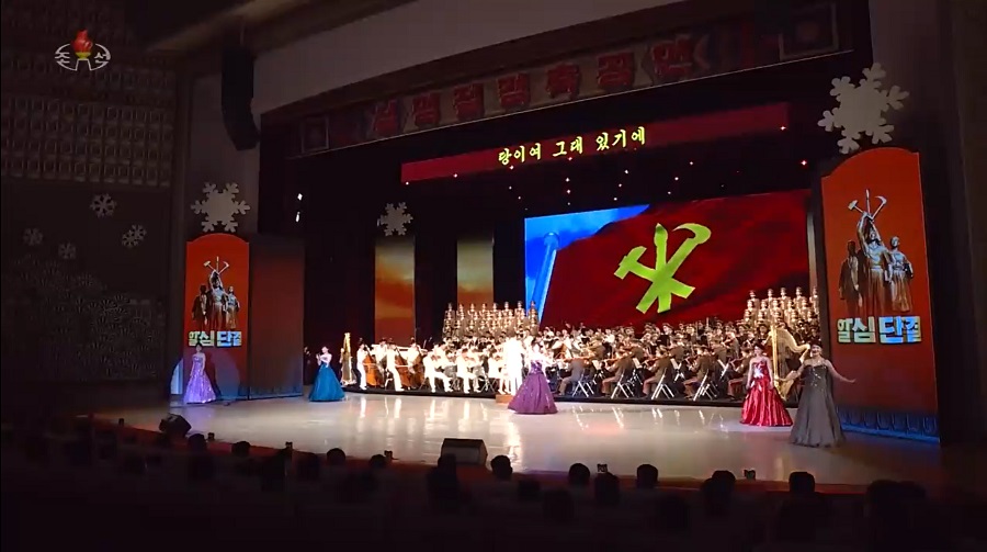 Umělecké divadlo Mansude, dějiště představení, bylo naplněno nadšením a radostí diváků, kteří měli tu čest sledovat koncert společně s váženým soudruhem generálním tajemníkem ve významný lidový svátek v roce velkých významných revolučních událostí.