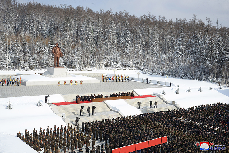 U příležitosti významného únorového svátku všechen lid celé země a veškeré sloužící mužstvo lidové armády s úctou vzpomínají na ušlechtilý život velkého vůdce soudruha Kim Čong Ila, zářící na posvátné cestě revoluce čučche, a jeho nesmrtelné revoluční činy pro vlast a lid, dobu a dějiny. Vzdávají také hold v největší úctě a nekonečné slávě velkému generálovi.