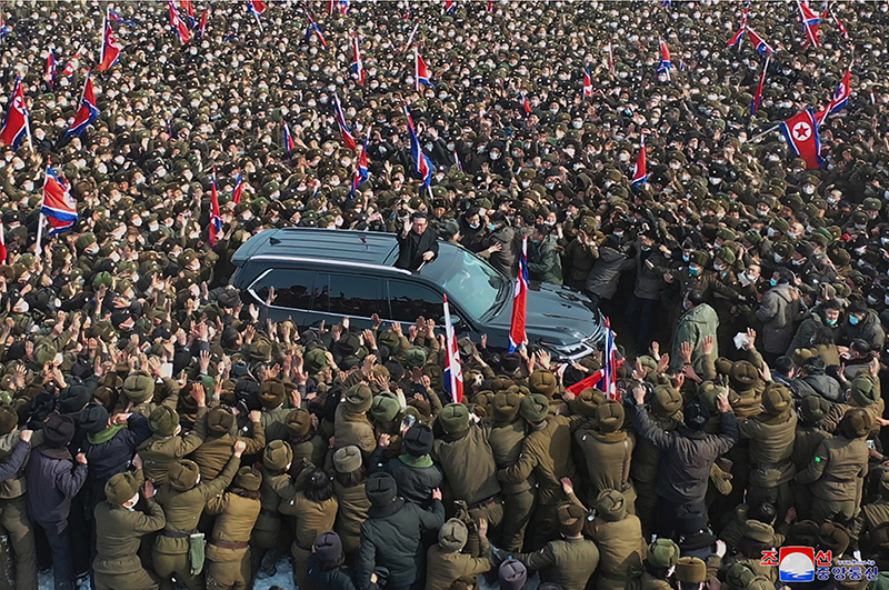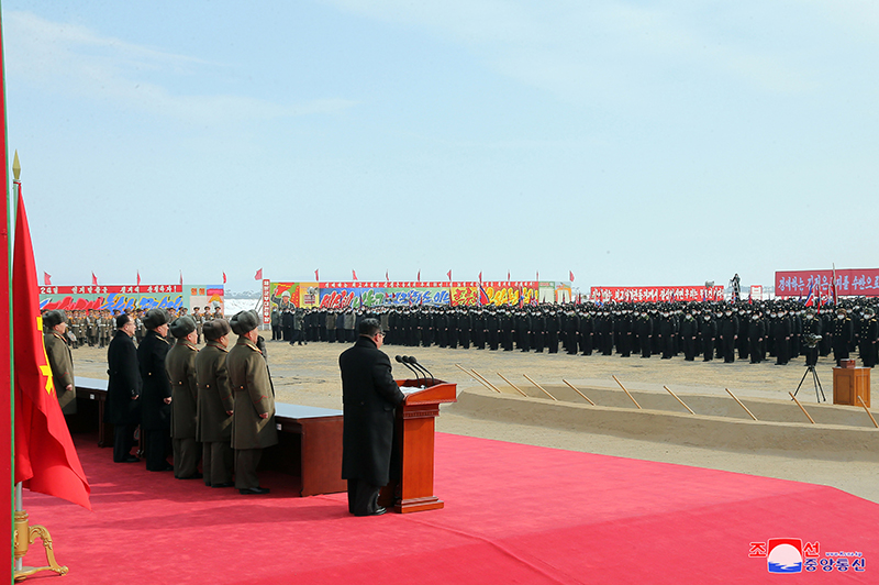 Vyjádřil radost z toho, že po zahájení výstavby obytných domů s 10 tisíci byty pro rok 2022, která má velký význam při řešení problému bydlení pro obyvatele hlavního města, byla zahájena výstavba rozsáhlého skleníkového zemědělského družstva, které výrazně pomůže životu obyvatel města Hamhung a provincie Jižní Hamgjong. Poslal bojový pozdrav sloužícímu mužstvu lidové armády a funkcionářům ve stavebnictví, kteří jsou nasazeni na frontě Rjonpcho, aby úspěšně plnili nejdůležitější stranický a státní politický úkol v oblasti stavební politiky.