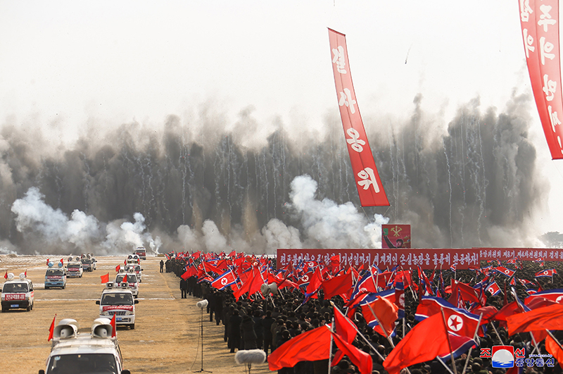 Na slavnostním zahájení přednesli generálové Korejské lidové armády soudruzi Kim Mjong Sik a Kim Kwang Hjok projevy odhodlání.