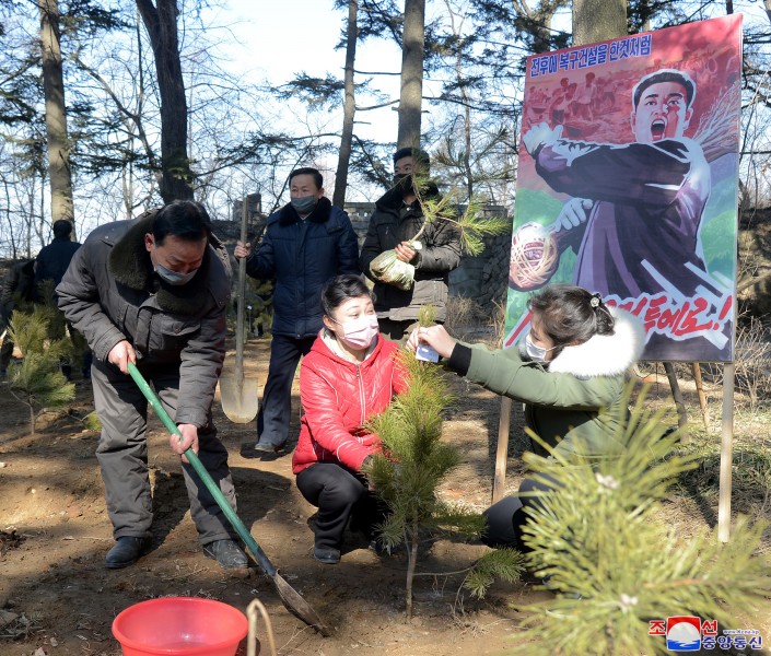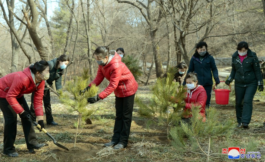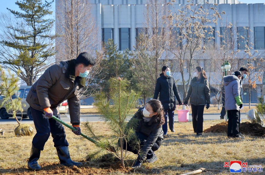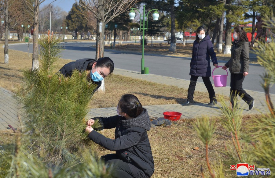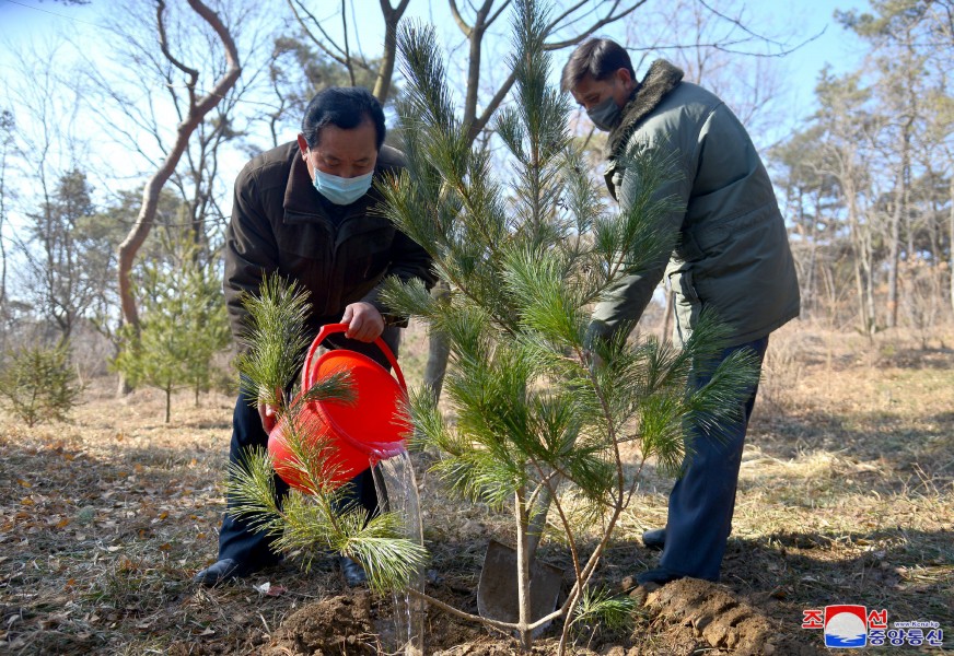 Funkcionáři a členové organizací pracujících vysadili stromy na různých místech v Pchjongjangu. Různé jednotky, včetně Ústředního výboru Svazu mládeže, Správy vysokorychlostní úderné brigády mládeže a Správy úderného pracovního oddílu mládeže „828“, zasadily se srdečnou péčí více než tisíc stromů a keřů více než 10 druhů v oblasti Paláce školáků Mangjongde.