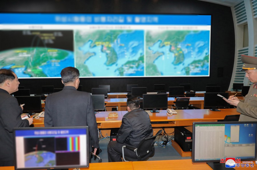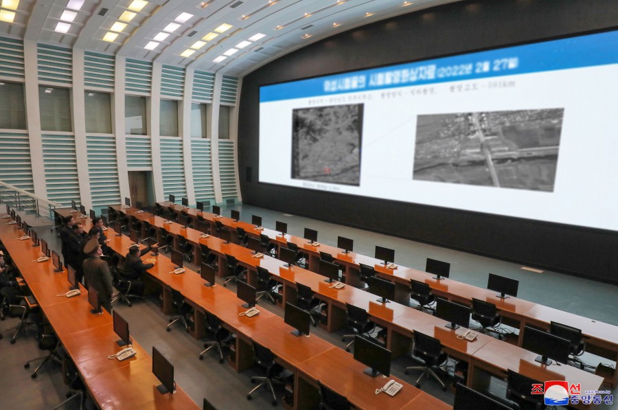 Pchjongjang 10. března čučche 111 (2022) (KCNA) – Generální tajemník Korejské strany práce a předseda pro státní záležitosti Korejské lidově demokratické republiky vážený soudruh Kim Čong Un na místě vedl práci Státní správy pro výzkum vesmíru.