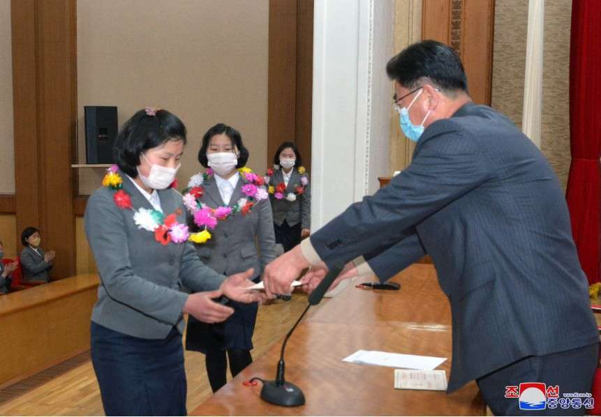 Na slávnostnom stretnutí, ktorého sa zúčastnil hlavný tajomník provinčného výboru KSP za provinciu Južný Hamgjong súdruh Ri Čong Nam, príslušní funkcionári, mládež a študenti, im boli udelené dobrovoľnícke osvedčenia a odzneli blahoželania a prísahy.