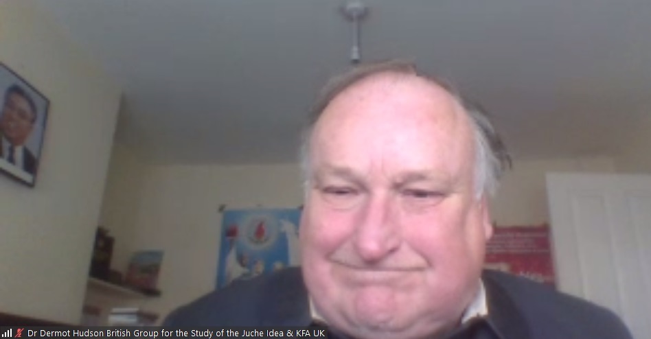 Za Spoločnosť česko-kórejského priateľstva Pektusan a Českú skupinu pre štúdium a uskutočnenie myšlienky čučche sa zahájenia seminára zúčastnil súdruh Velitš, ktorý v mene Pektusanu pozdravil súdružky a súdruhov z KASS-u, kórejských ambasád a organizácií priateľstva s Kóreou. Povedal, že je škoda, že sa tento rok pri významnom 110. výročí narodenia súdruha Kim Ir Sena nemôžu stretnúť prívrženci myšlienky čučche osobne v Pchjongjangu, ale je rád, že sa stretli aspoň takto cez internet a že činnosť organizácií priateľstva s KĽDR neustáva. Informoval účastníkov o seminári, ktorý sa uskutočnil v sobotu 9. apríla v Prahe. Konštatoval, že súčasná politická situácia je veľmi náročná pre medzinárodné komunistické a národno-oslobodenecké hnutie, v KĽDR však aj naďalej socializmus napreduje a zabezpečuje ľuďom skutočné šťastie a zmysluplný život. Vyzval na spojenie sa pokrokových síl a spoločný boj proti imperializmu.