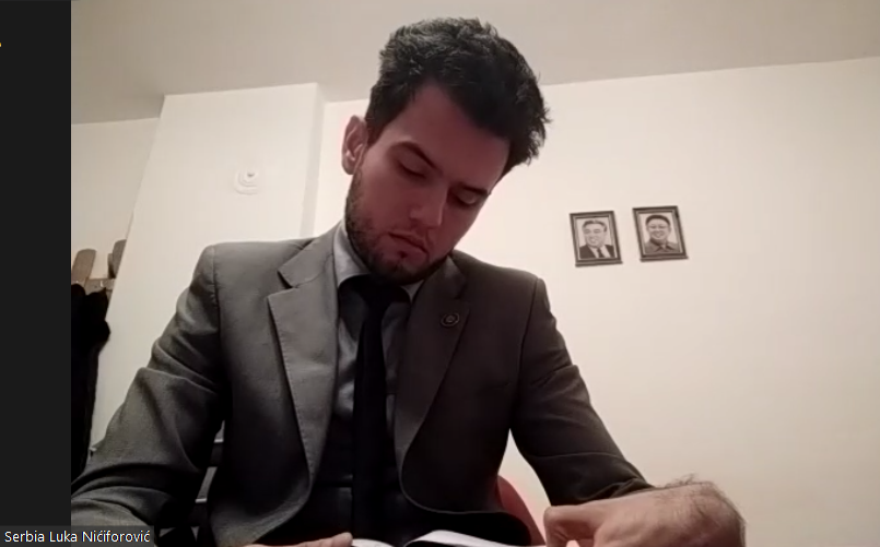 S príhovorom vystúpil tiež súdruh Luka Nićiforović zo Srbska. Povedal, že veľký vodca súdruh Kim Ir Sen rozvinul myšlienky všetkých veľkých komunistov, pričom jeho charizmatická osobnosť je veľmi dôležitá pre svetové komunistické hnutie. Pochválil Umelecké štúdio Mansude, ktoré je populárne u pokrokovo zmýšľajúcich ľudí všetkých krajín bývalej Juhoslávie a povedal, že všetok pokrokový srbský ľud aj ľud ostatných juhoslovanských krajín podporuje KĽDR. Dodal, že súdruh Kim Ir Sen, ako aj neskôr súdruh Kim Čong Il a dnes súdruh Kim Čong Un udržiava dobré vzťahy s juhoslovanským respektíve srbským ľudom.
