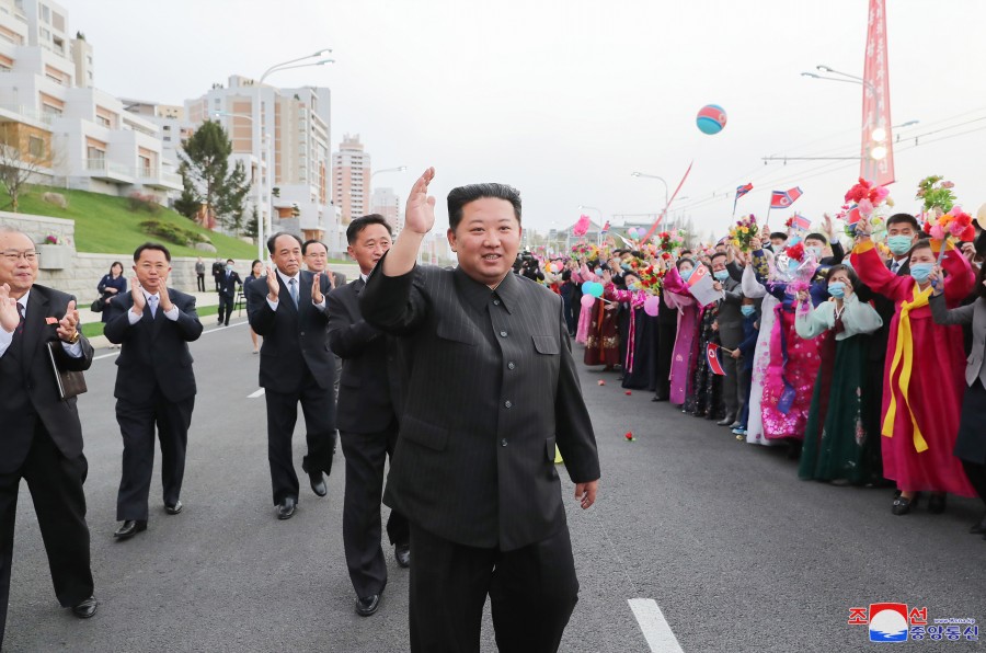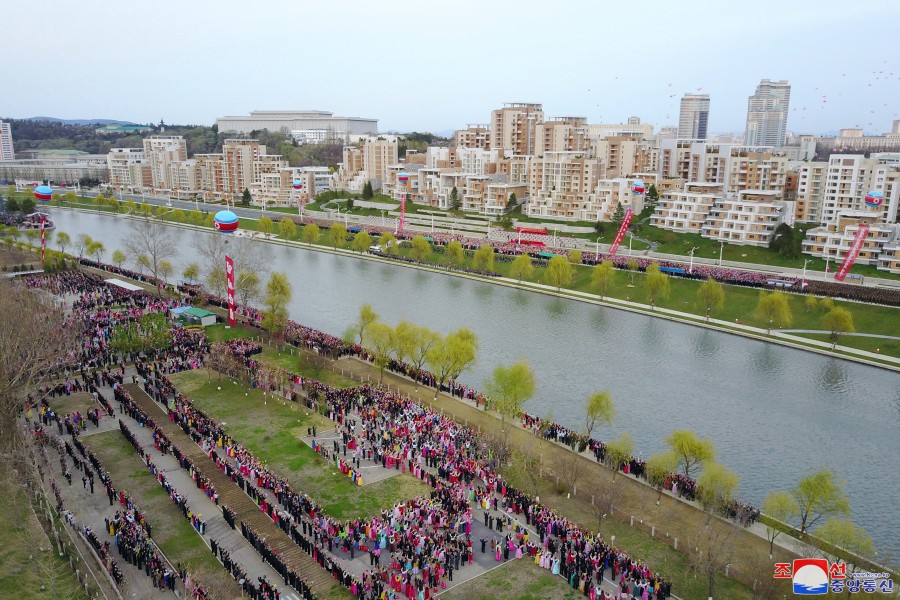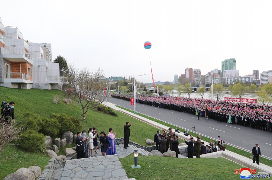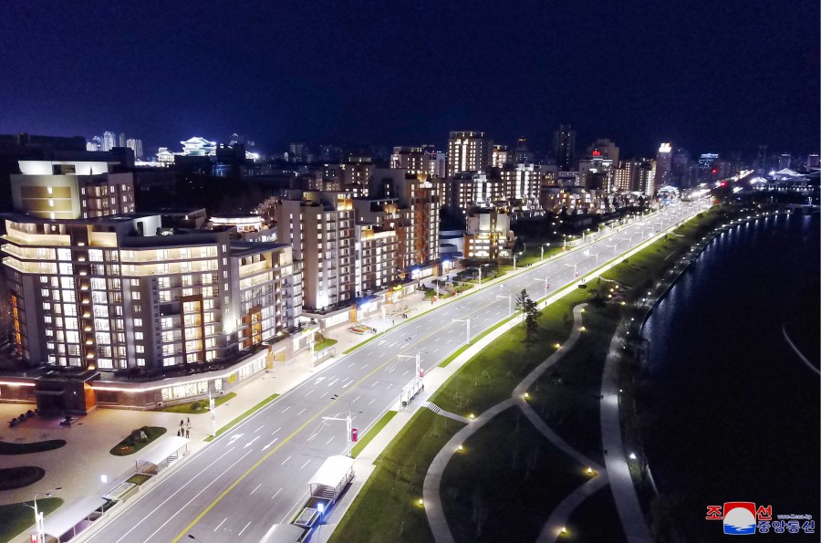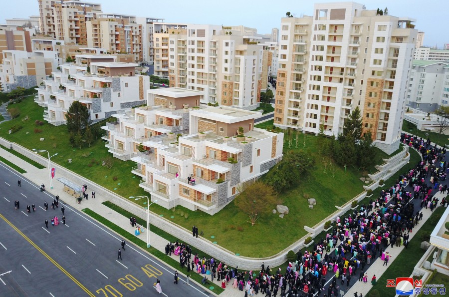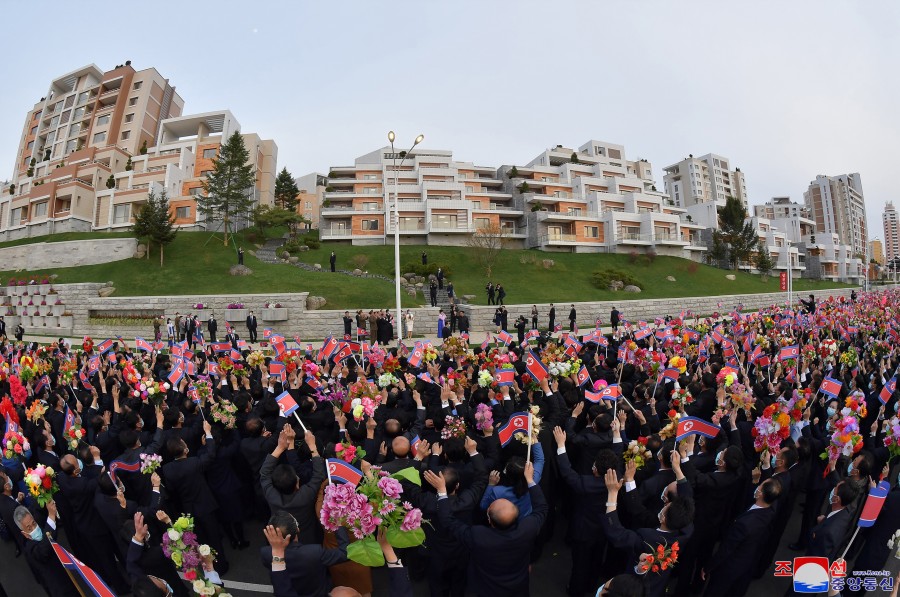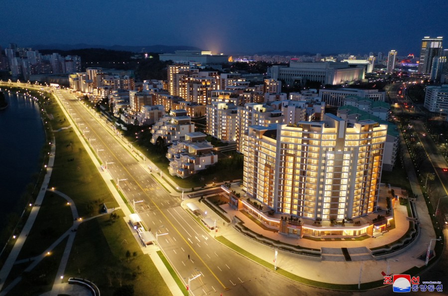 Pchjongjang 14. dubna čučche 111 (2022) (KCNA) – 13. dubna se uskutečnilo slavnostní dokončení terasovité rezidenční čtvrti na nábřeží řeky Potchong.