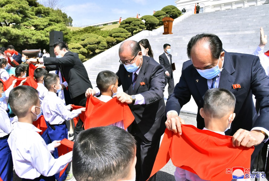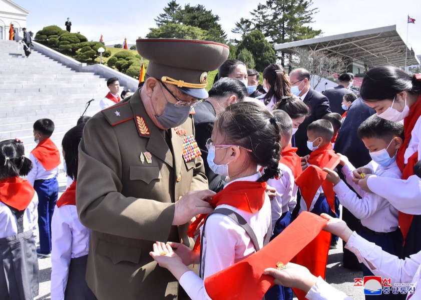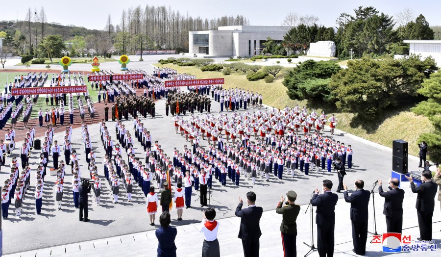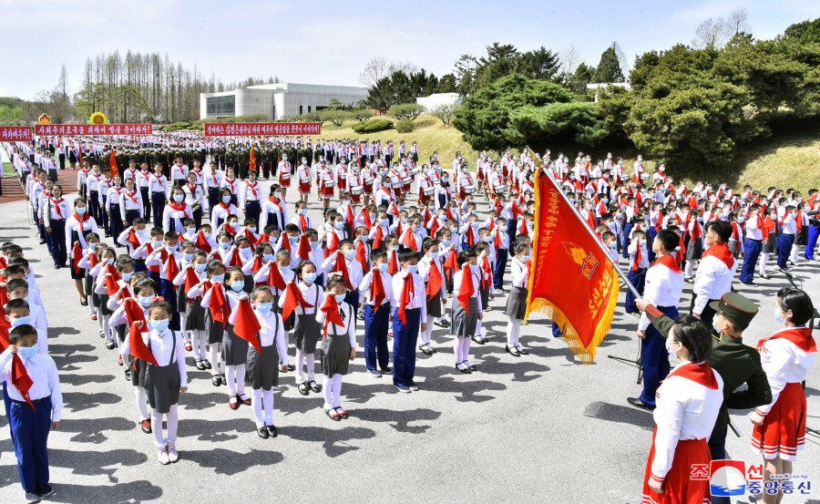Pchjongjang 15. dubna čučche 111 (2022) (KCNA) – U příležitosti 110. výročí narození velkého vůdce soudruha Kim Ir Sena se 14. dubna v Revoluční škole Mangjongde konalo celostátní společné shromáždění organizací Korejského svazu dětí.