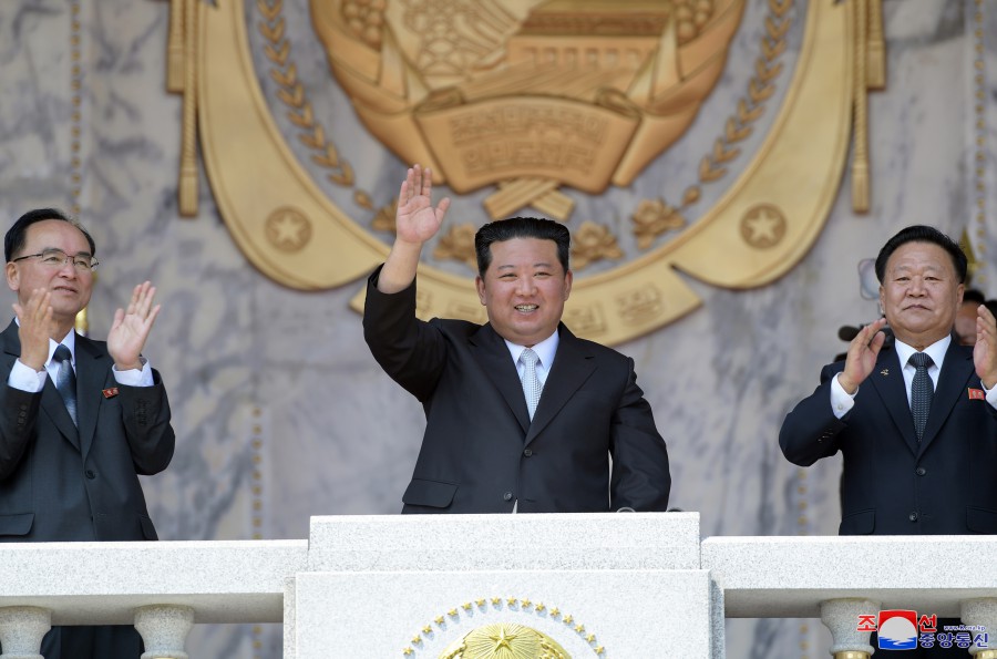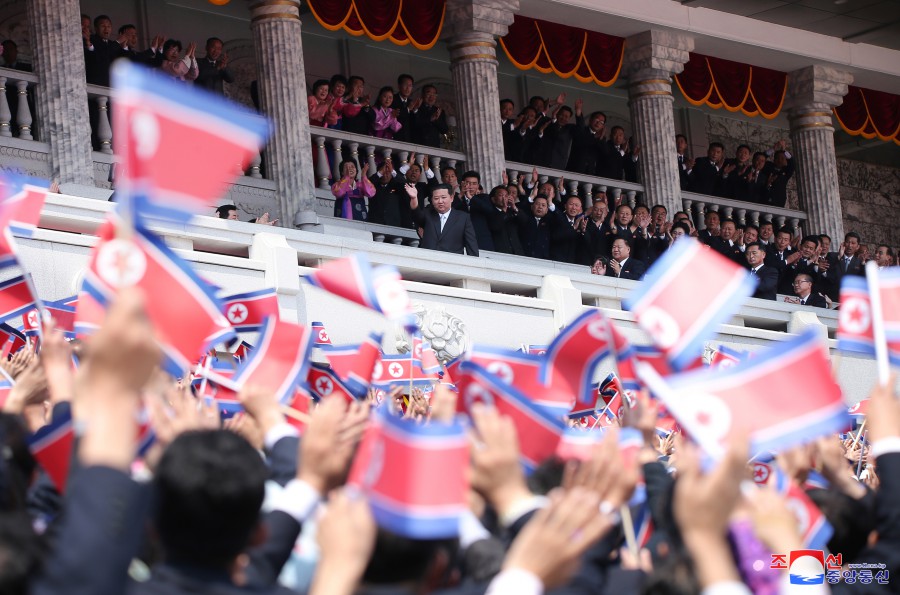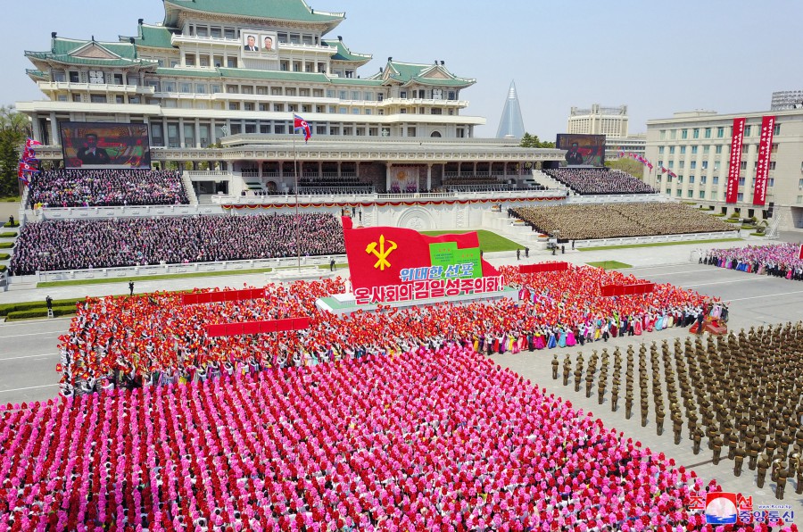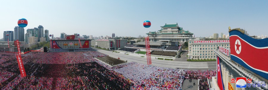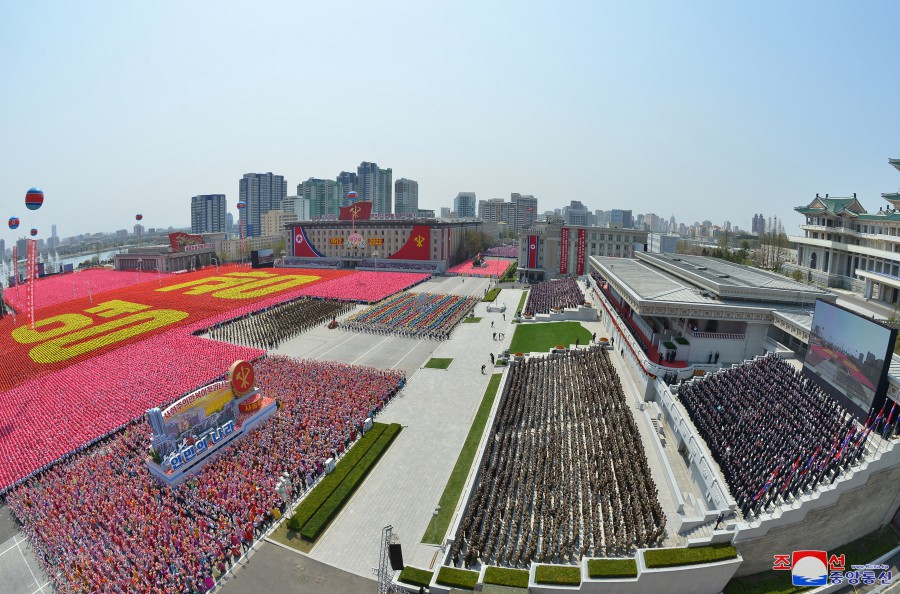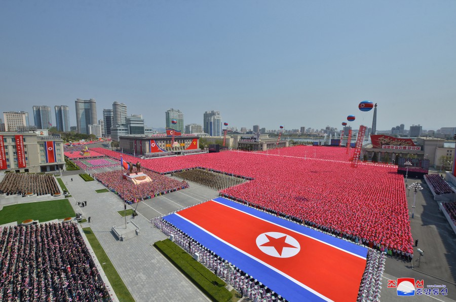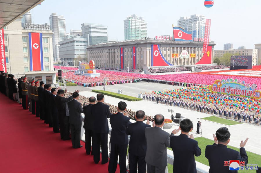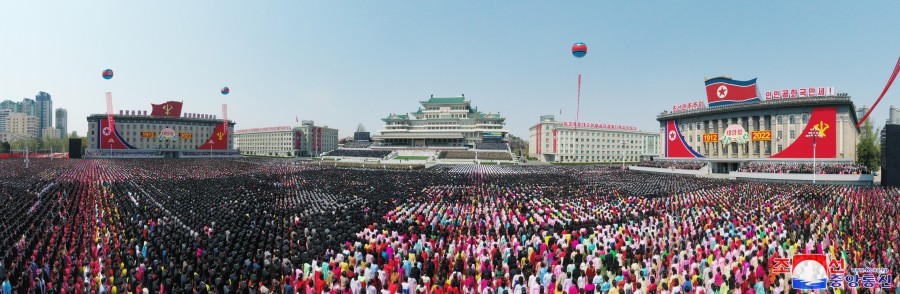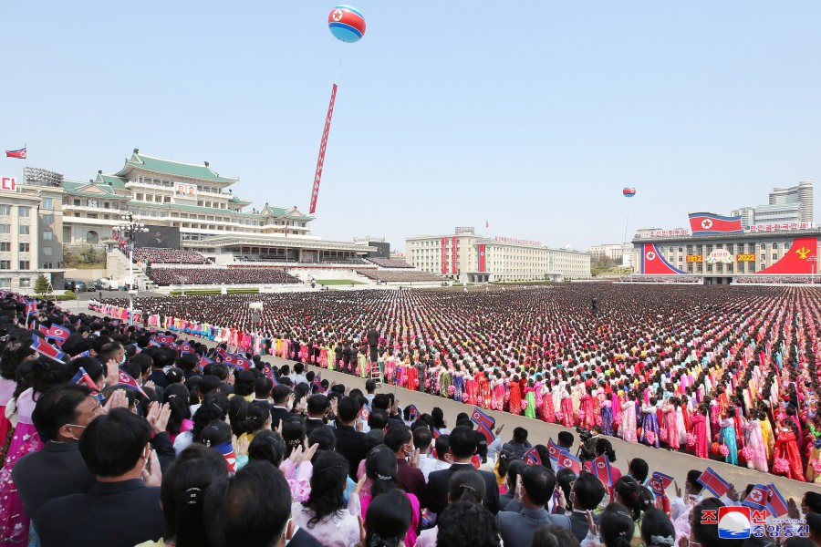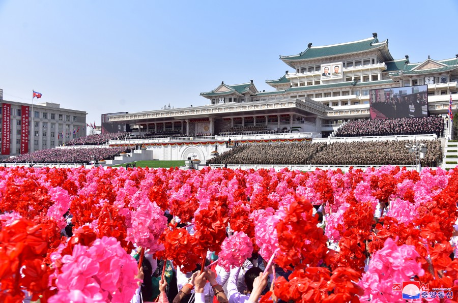 Pchjongjang 16. dubna čučche 111 (2022) (KCNA) – 15. dubna se na Kim Ir Senově náměstí v Pchjongjangu konalo ústřední slavnostní shromáždění a masový průvod obyvatel Pchjongjangu na počest 110. výročí narození velkého vůdce soudruha Kim Ir Sena.