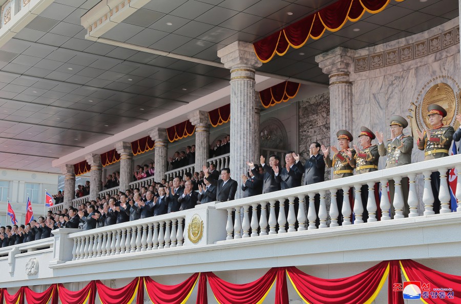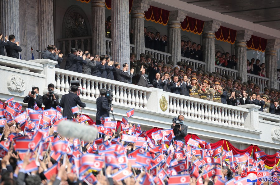 Na tribuně byl přítomen člen prezídia politbyra Ústředního výboru Korejské strany práce, 1. místopředseda Komise pro státní záležitosti KLDR a předseda prezídia Nejvyššího lidového shromáždění soudruh Čche Rjong He, člen prezídia politbyra ÚV KSP a tajemník pro organizační záležitosti ÚV strany soudruh Čo Jong Won a člen prezídia politbyra ÚV KSP a místopředseda Komise pro státní záležitosti KLDR, předseda vlády soudruh Kim Tok Hun.