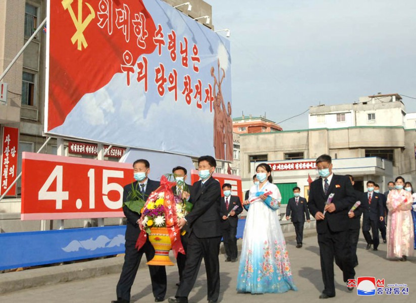 U příležitosti Dne slunce, největšího státního svátku, 15. dubna generální tajemník Korejské strany práce a předseda pro státní záležitosti KLDR vážený soudruh Kim Čong Un s manželkou Ri Sol Džu navštívil Palác slunce Kumsusan.