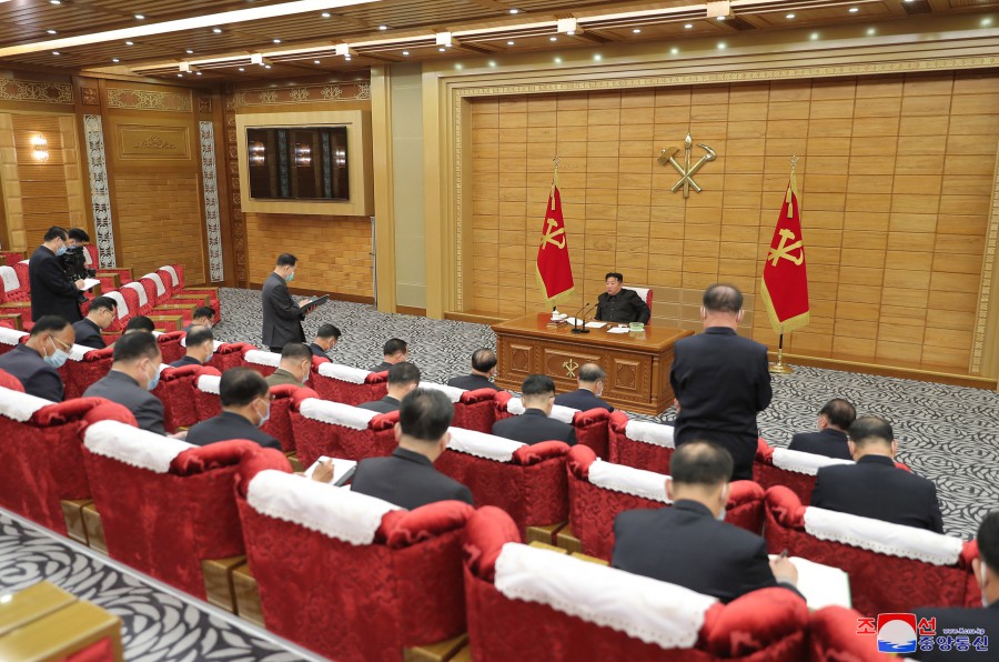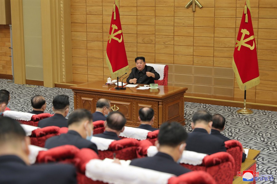 Politbyro vyhodnotilo, že v souladu s rozhodnutím a směrnicí ÚV strany o přechodu státního protiepidemického systému na maximální nouzový protiepidemický systém byl zahájen celostátní protiepidemický boj, který má názorně demonstrovat celému světu sílu a ducha hrdinné Koreje v boji proti zhoubné pandemii, v důsledku čehož je na velké části území udržován stabilní stav, celostátní šíření pandemie je postupně omezováno, počet uzdravených se zvyšuje a počet úmrtí znatelně klesá.
