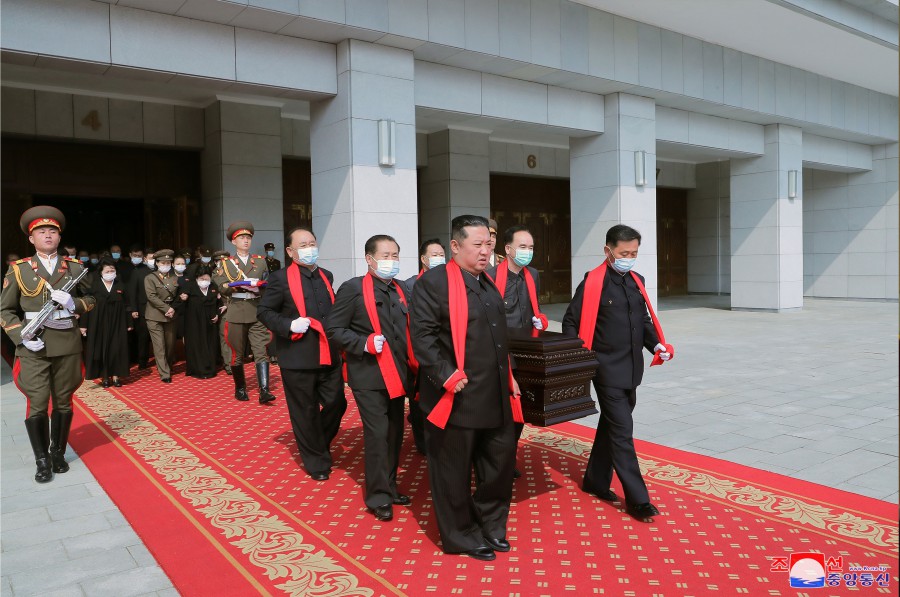 Soudruh Kim Čong Un s hlubokým zármutkem z rozloučení se vzácným veteránem revoluce, kterého si z celého srdce vážil a o kterého se nadevše staral, zasypal ostatky zesnulého zeminou.