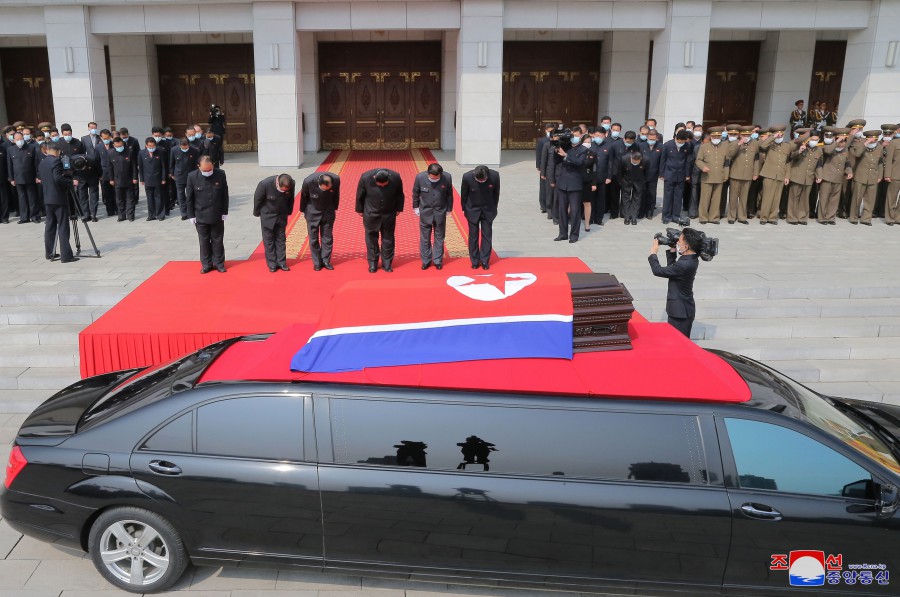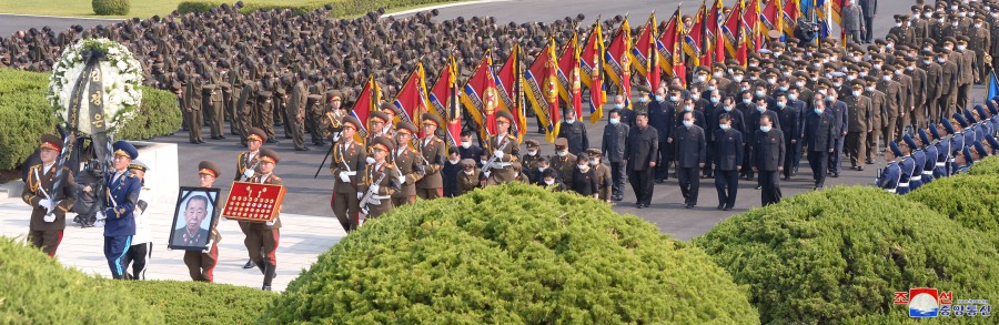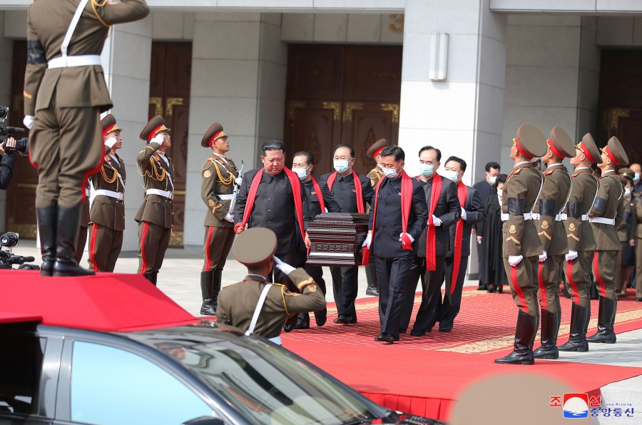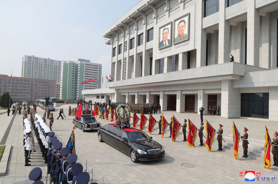 Generální tajemník Korejské strany práce a předseda pro státní záležitosti Korejské lidově demokratické republiky vážený soudruh Kim Čong Un se zúčastnil státního pohřbu.
