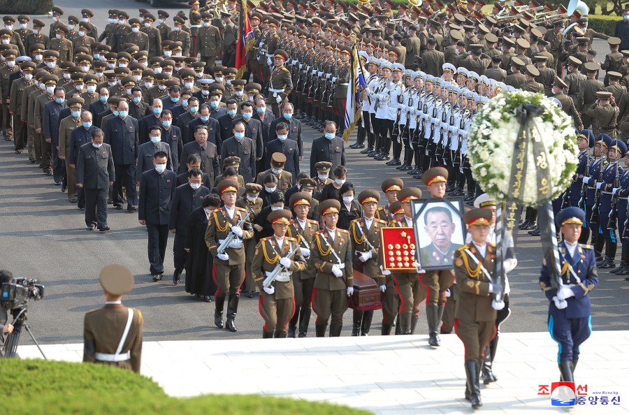Četní vojáci Korejské lidové armády a obyvatelé hlavního města, stojící v zástupech podél ulic, s hlubokým zármutkem vyprovázeli oddaného bojovníka, který po celý život bezvýhradně podporoval stranu a vůdce jako revoluční velitel a vzorný vlastenec, jenž dal vše pro blaho vlasti a lidu.