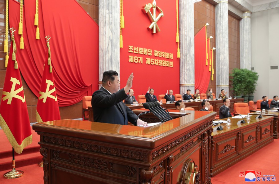 Pchjongjang 11. června čučche 111 (2022) (KCNA) – 5. rozšířené plenární zasedání 8. Ústředního výboru Korejské strany práce se konalo v konferenčním sále sekretariátu Ústředního výboru strany ve dnech 8. až 10. června čučche 111 (2022) za zrychleného velkého pochodu všeho lidu k oslavě tohoto historického roku jako velkého předělu v rozvoji revoluce a zároveň při překonávání bezpříkladných obtíží, kterým národ čelí s přesvědčením, vůlí a jednotou, které jsou vlastní čučchejské Koreji pod vedením vždy vítězného Ústředního výboru strany.