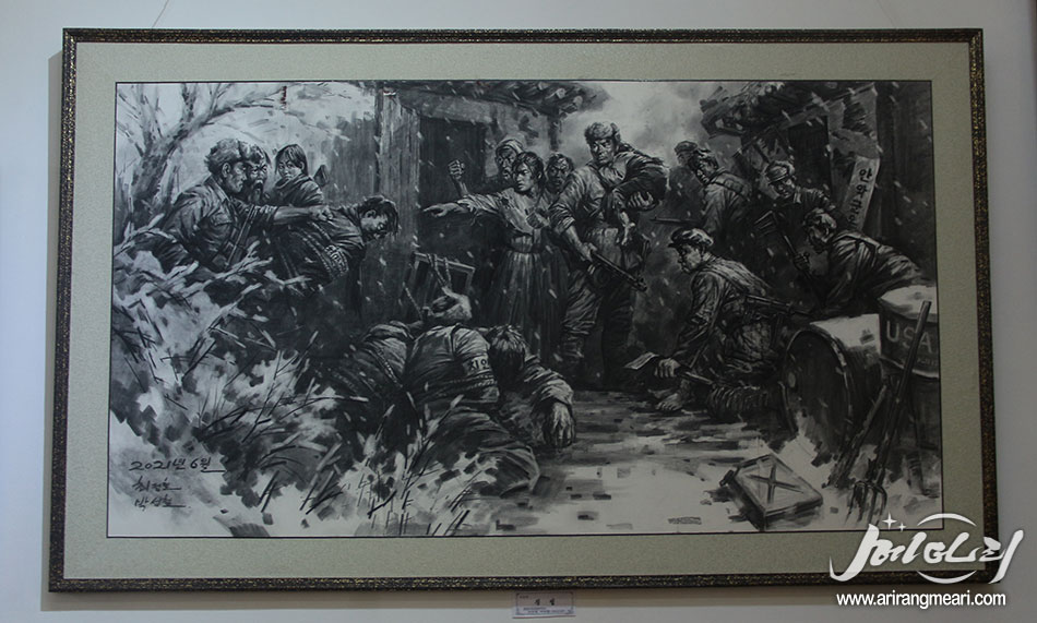 Jsou zde i díla, která odrážejí hrdinný boj naší armády a lidu při nemilosrdném ničení amerických imperialistů a třídních nepřátel, stejně jako tragickou situaci agresorů.