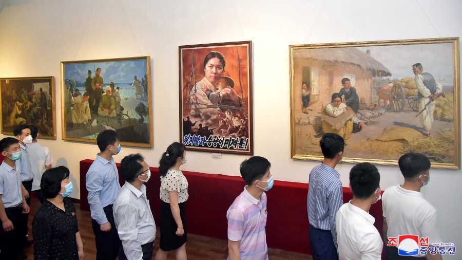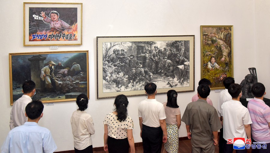 Pchjongjang 24. června čučche 111 (2022) (KCNA) – Umělecká výstava na téma třídního vzdělávání u příležitosti Dne boje proti americkým imperialistům – 25. června – byla zahájena 23. června v Mezinárodním domě kultury v Pchjongjangu.