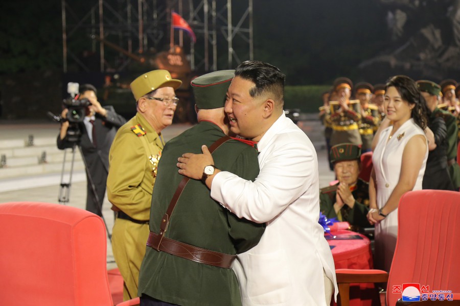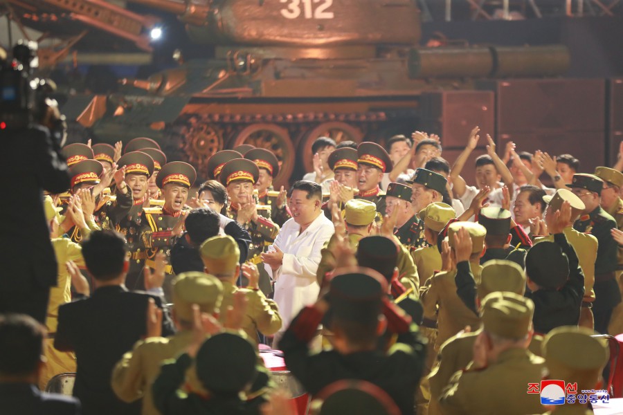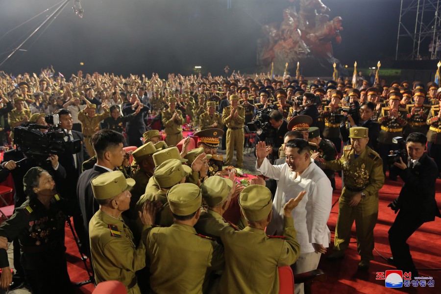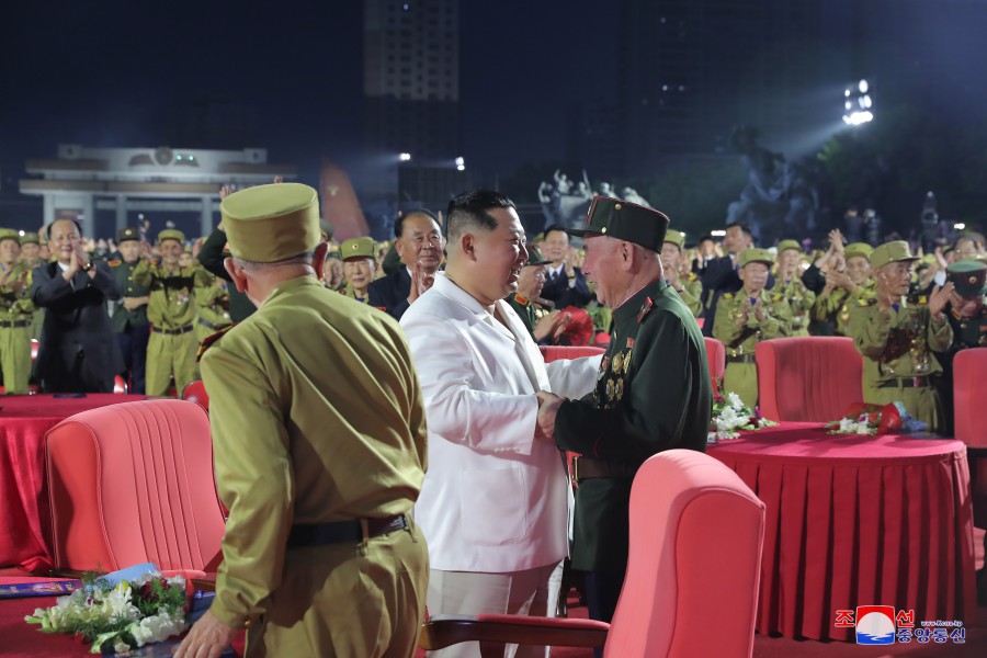 Pchjongjang 28. července čučche 111 (2022) (KCNA) – Náš lid a vojáci lidové armády, sebevědomě otevírají široký prostor pro vítězství socialismu pod vedením neporazitelné Korejské strany práce, s bezmeznou hrdostí na hrdinnou Koreu a hrdinný lid, kteří jsou oslavováni rok od roku a po desítky let, oslavují 69. výročí velkého válečného vítězství.