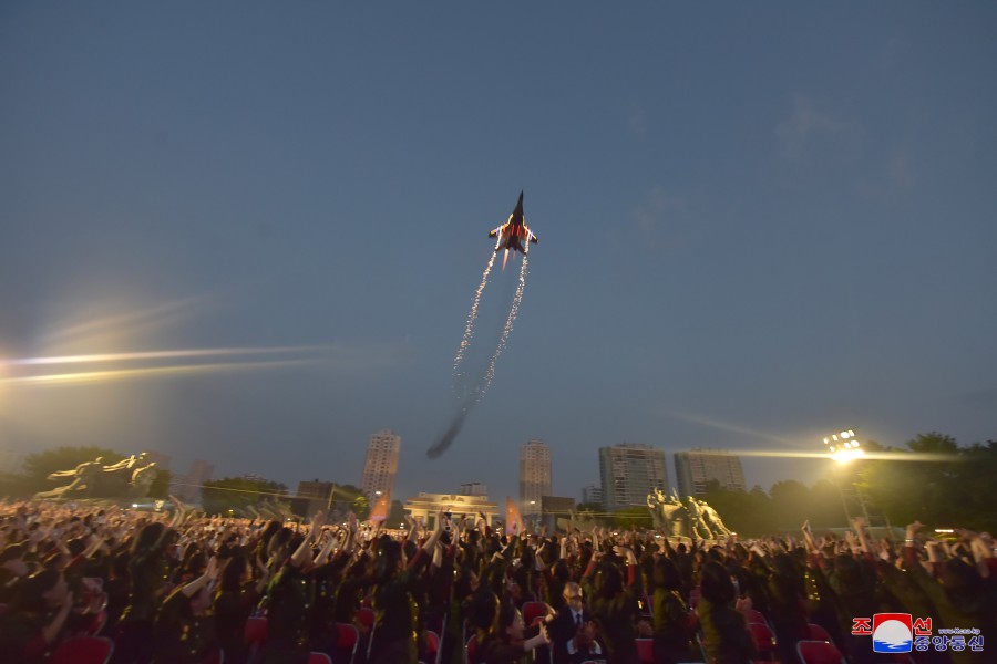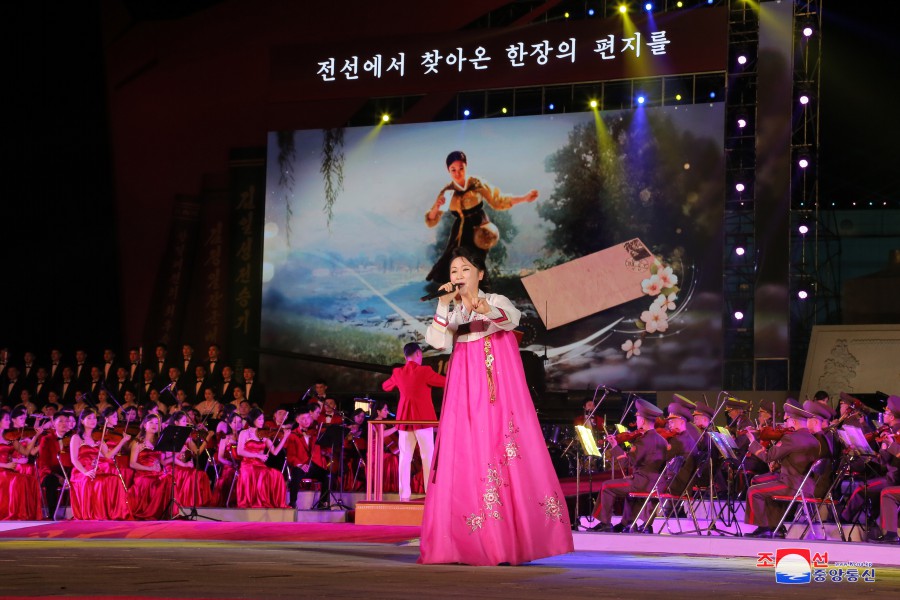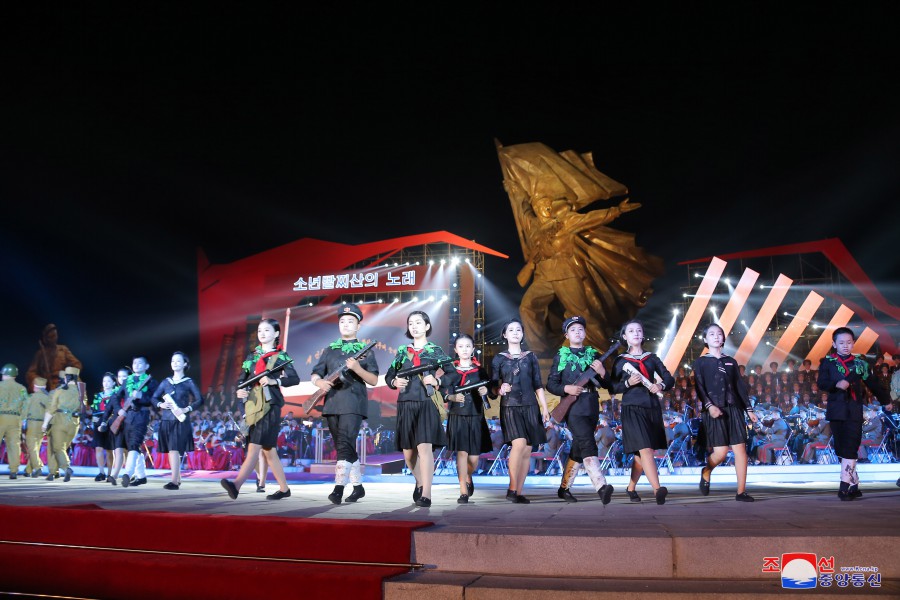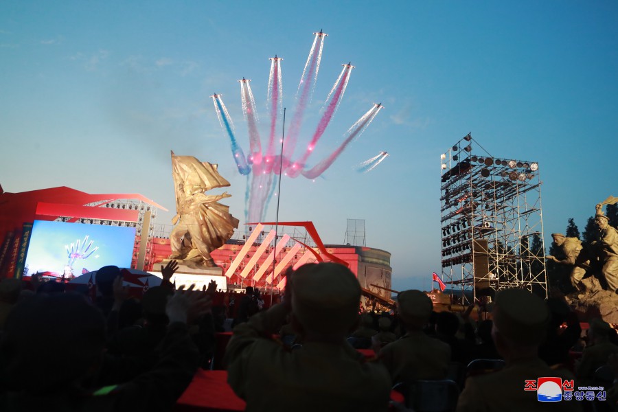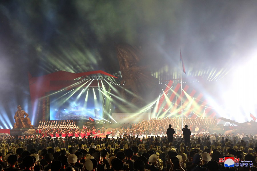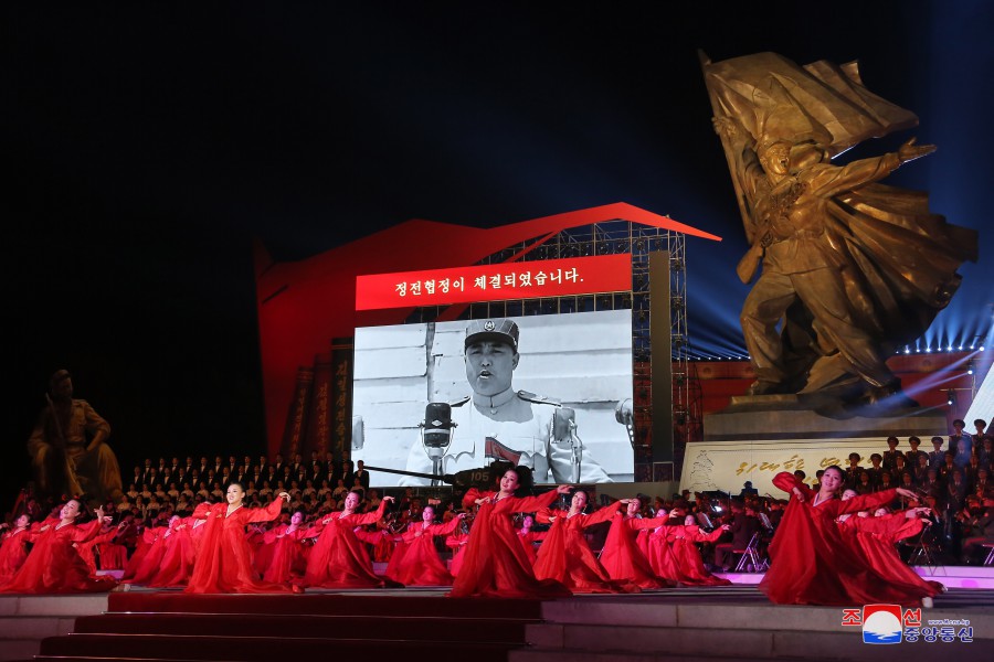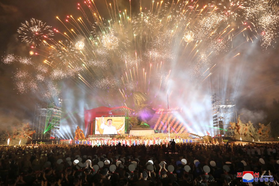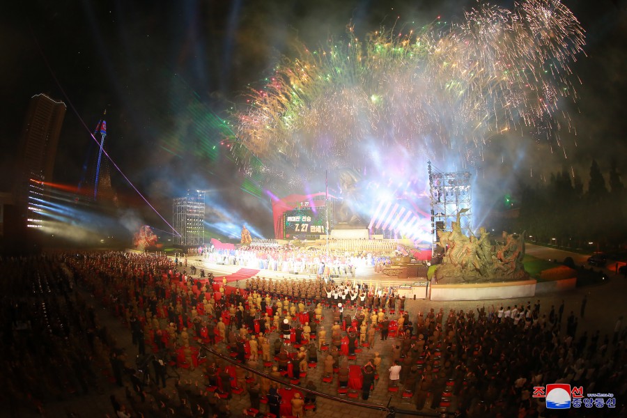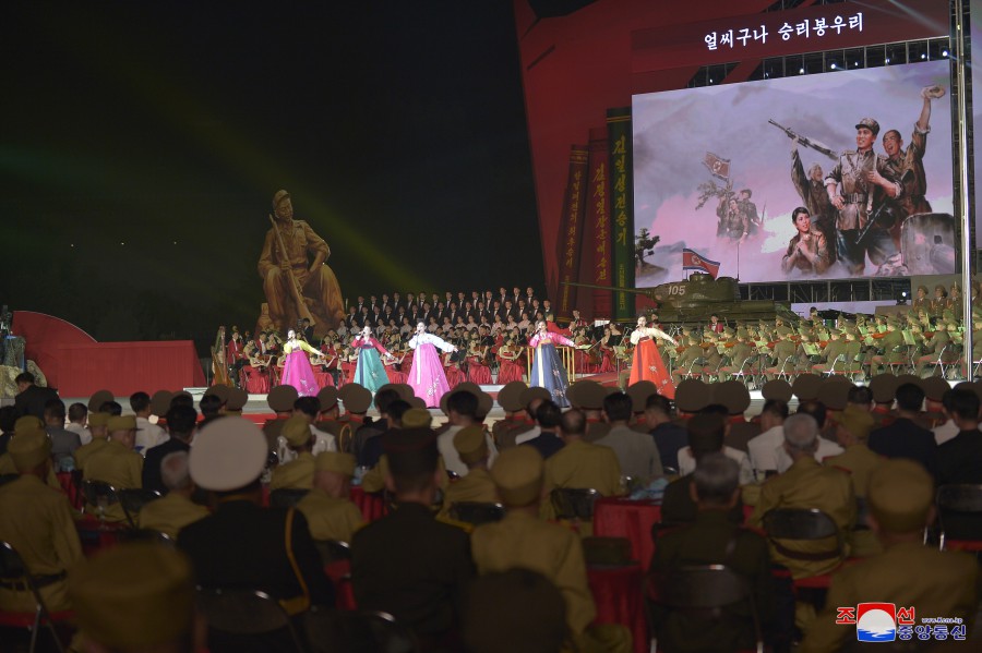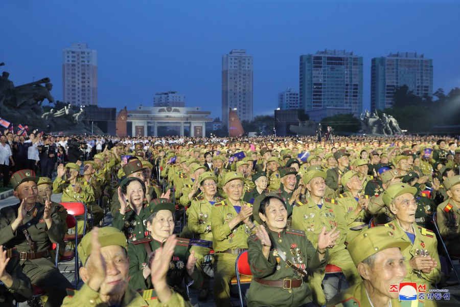 U příležitosti dne velkého vítězství ve válce, které se stalo věčným základem neporazitelnosti na cestě rozvoje slavné Korejské lidově demokratické republiky, vládne v zemi silné přesvědčení a vůle lidu pokračovat všemi prostředky v bojovném duchu a tradici vítězství, kterou generace hrdinů zanechala jako dědictví válečné éry, k bezchybnému dovršení revoluční věci čučche. V takovém prostředí se konalo slavnostní shromáždění před Památníkem vítězství ve Vlastenecké osvobozenecké válce v hlavním městě Pchjongjangu.